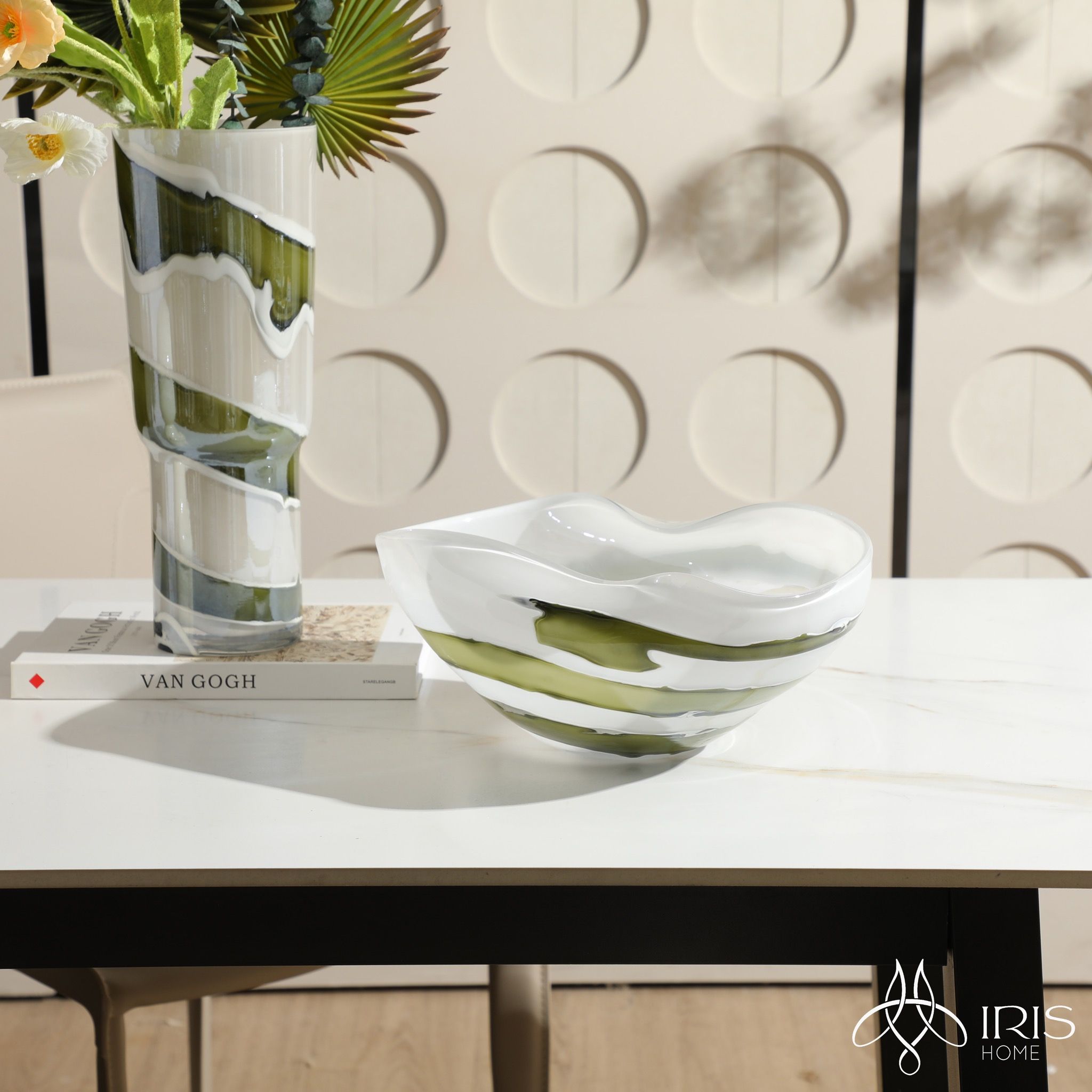 Tên: Âu thuỷ tinh trắng sữa viền xanh lá