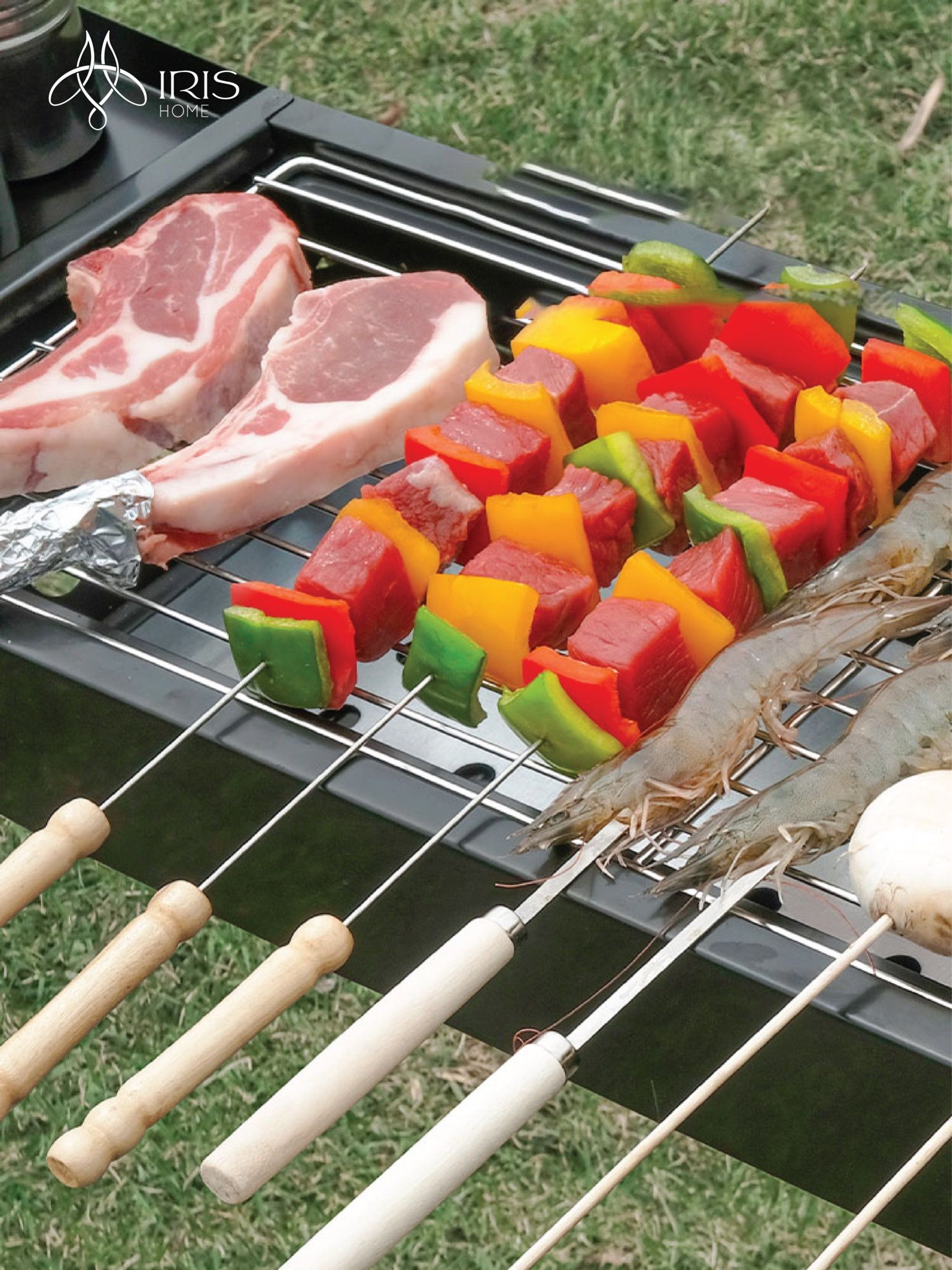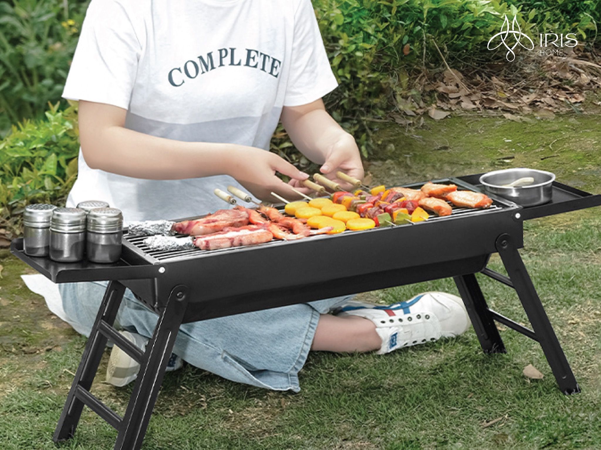 Tên: Bếp nướng ngoài trời không khói khung sắt, hép không gỉ. Kèm găng tay, gắp than, đũa