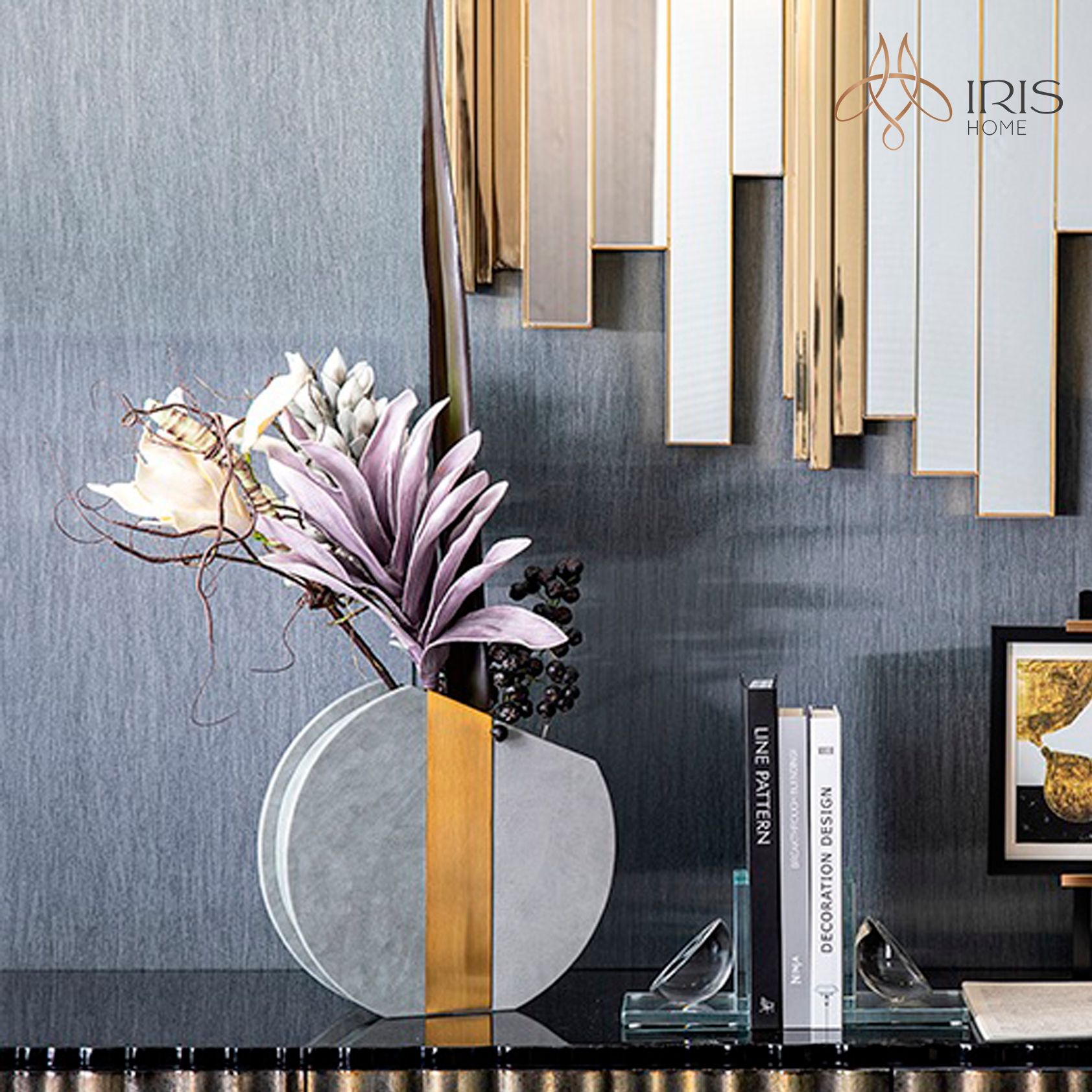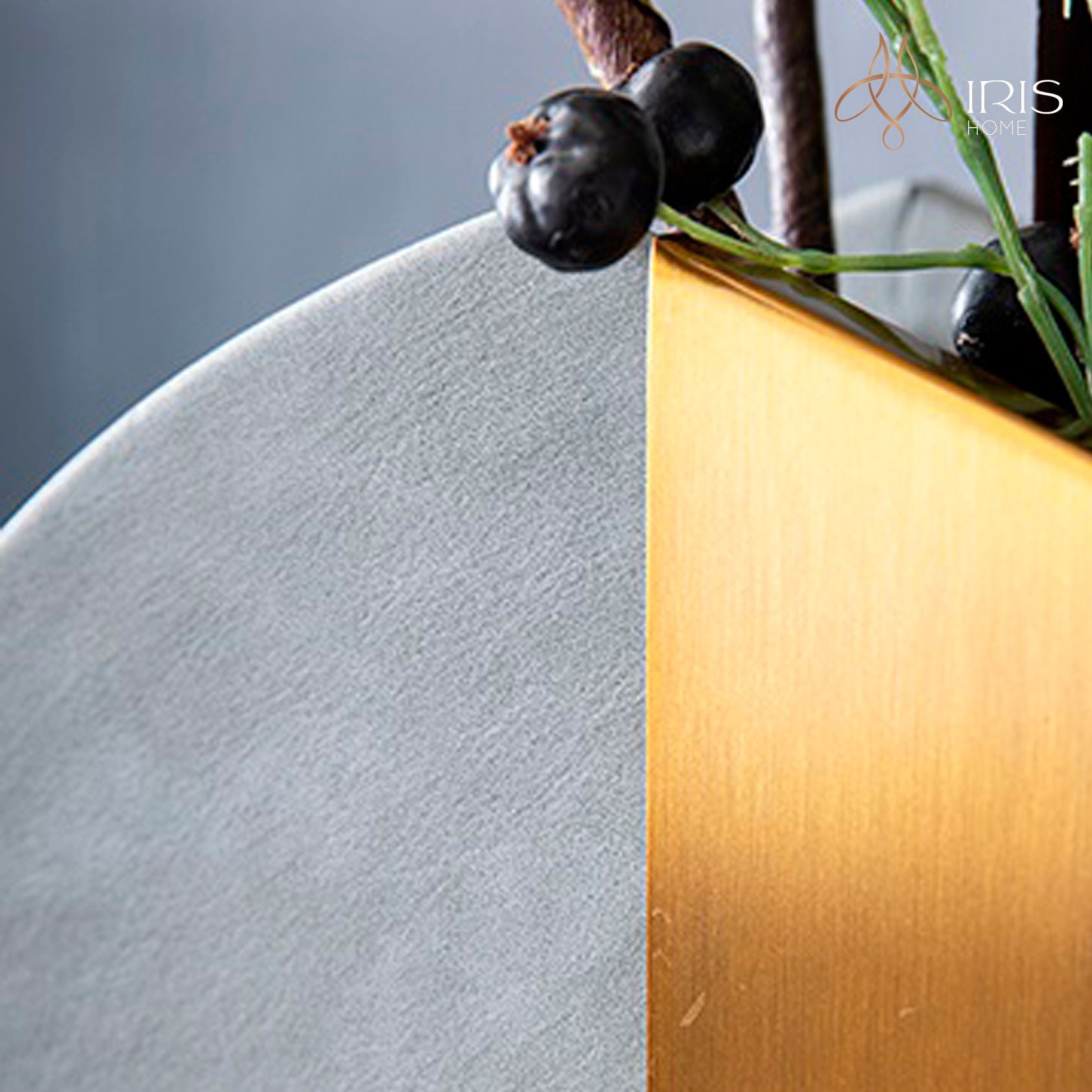 Bình da tròn vát có hình dáng bầu tròn, có điểm nhấn là tấm kim loại dọc ở phần thân