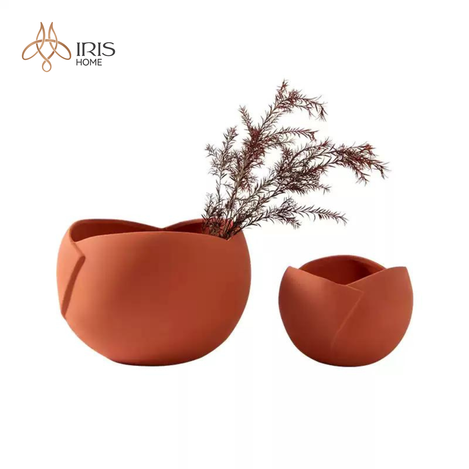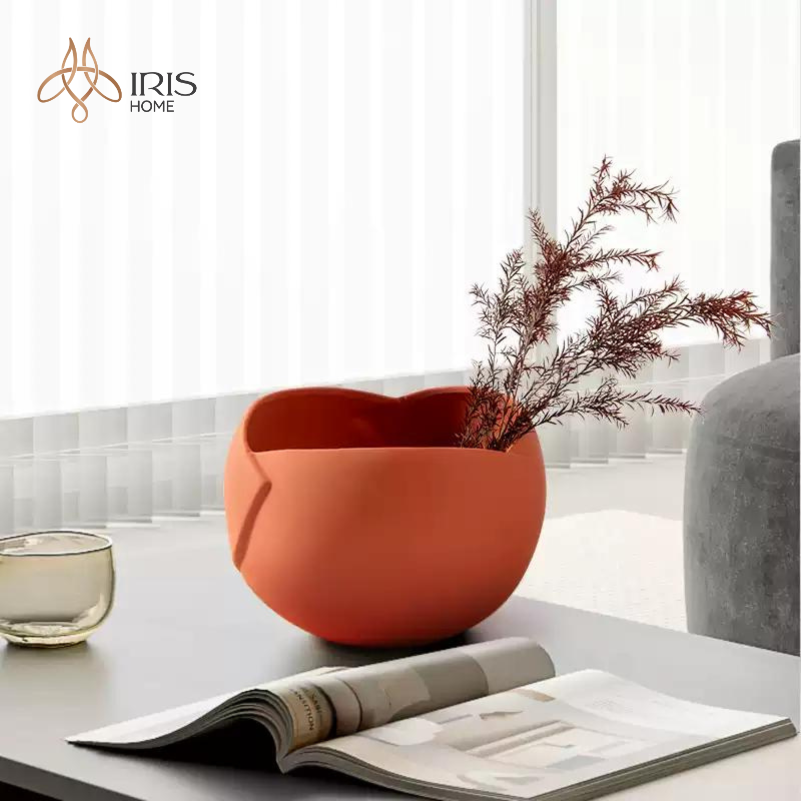 Bình hoa gốm sứ cam dáng tròn thiết kế viền nổi