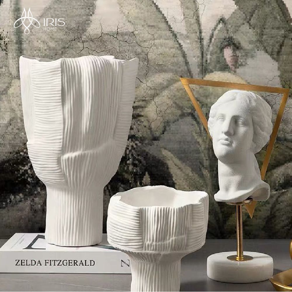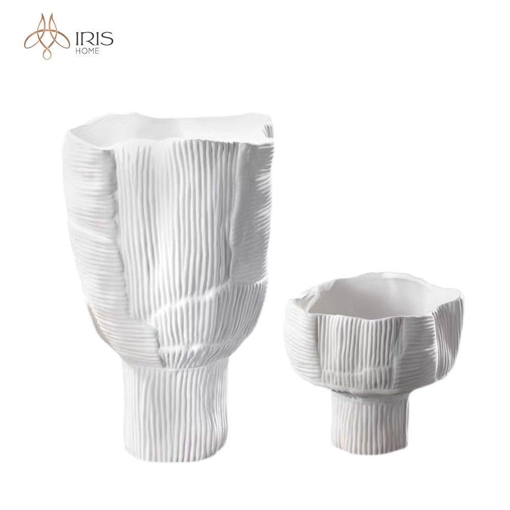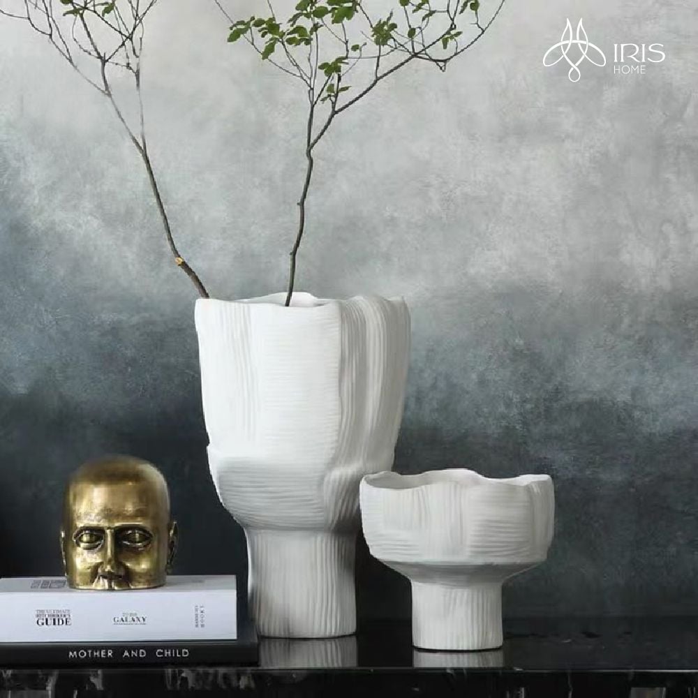 Tên: Bình hoa gốm trắng, họa tiết sọc. Nên cắm hoa khô