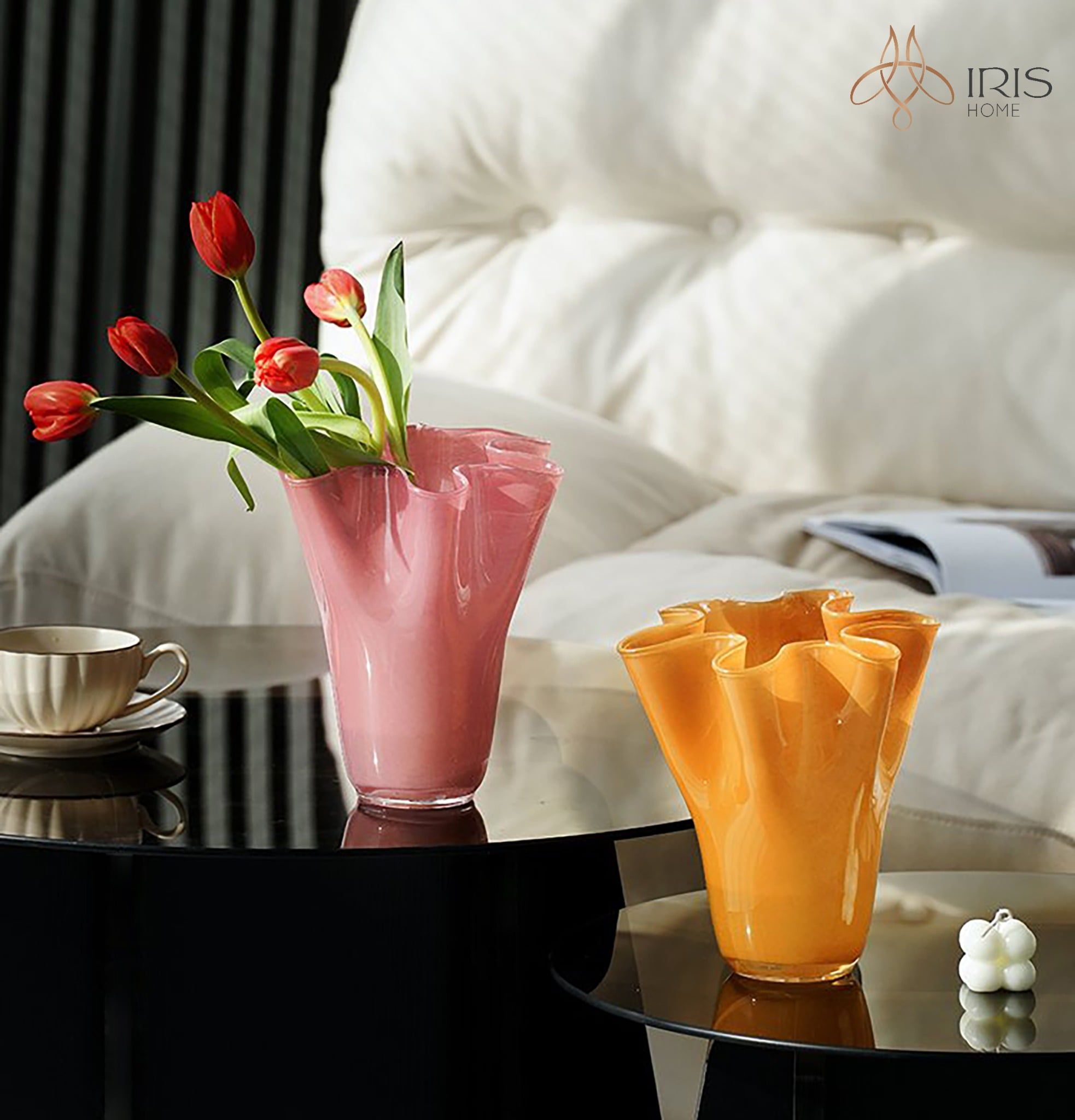 Bình hoa thuỷ tinh miệng loe lượn sóng