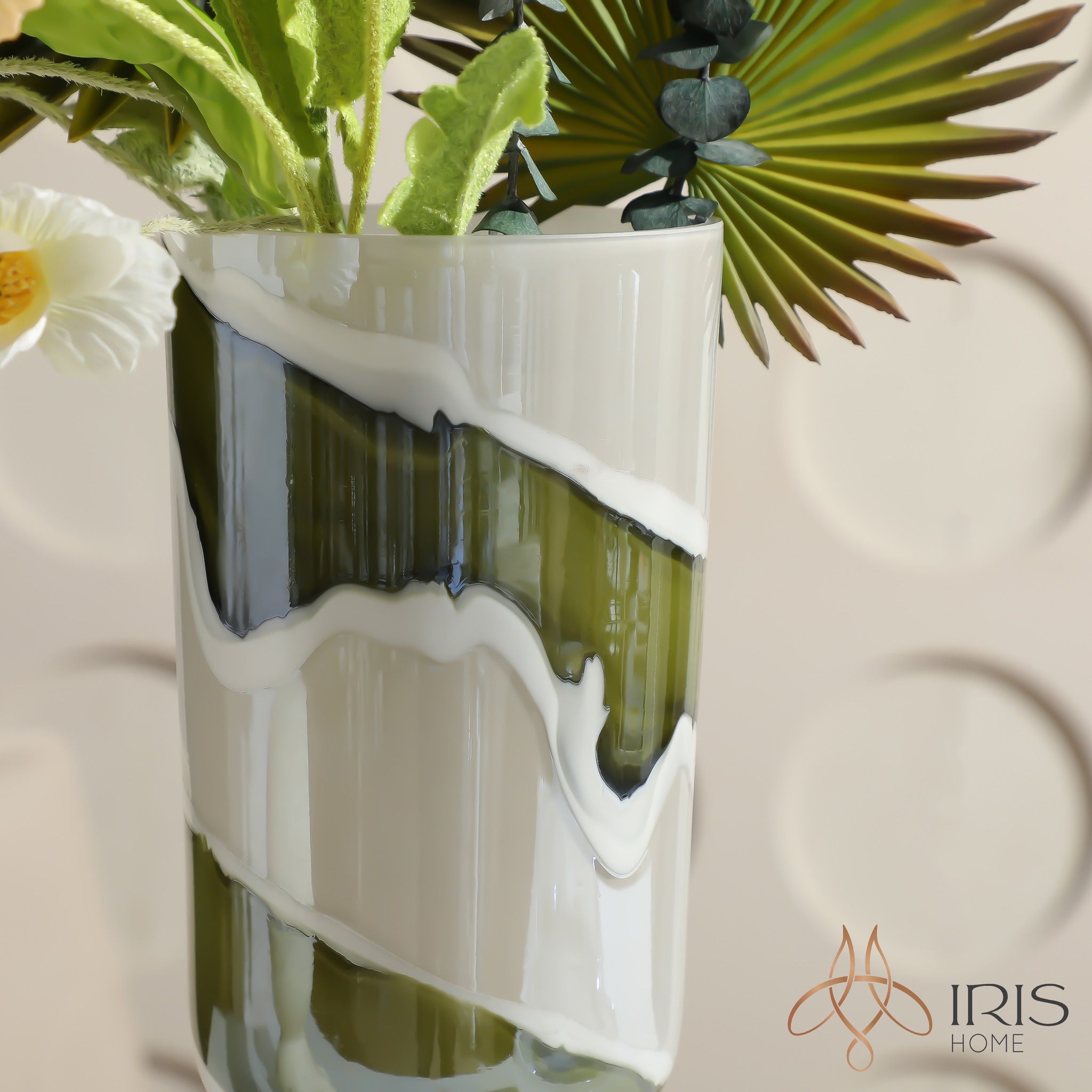 Bình hoa thuỷ tinh trắng sữa viền xanh lá