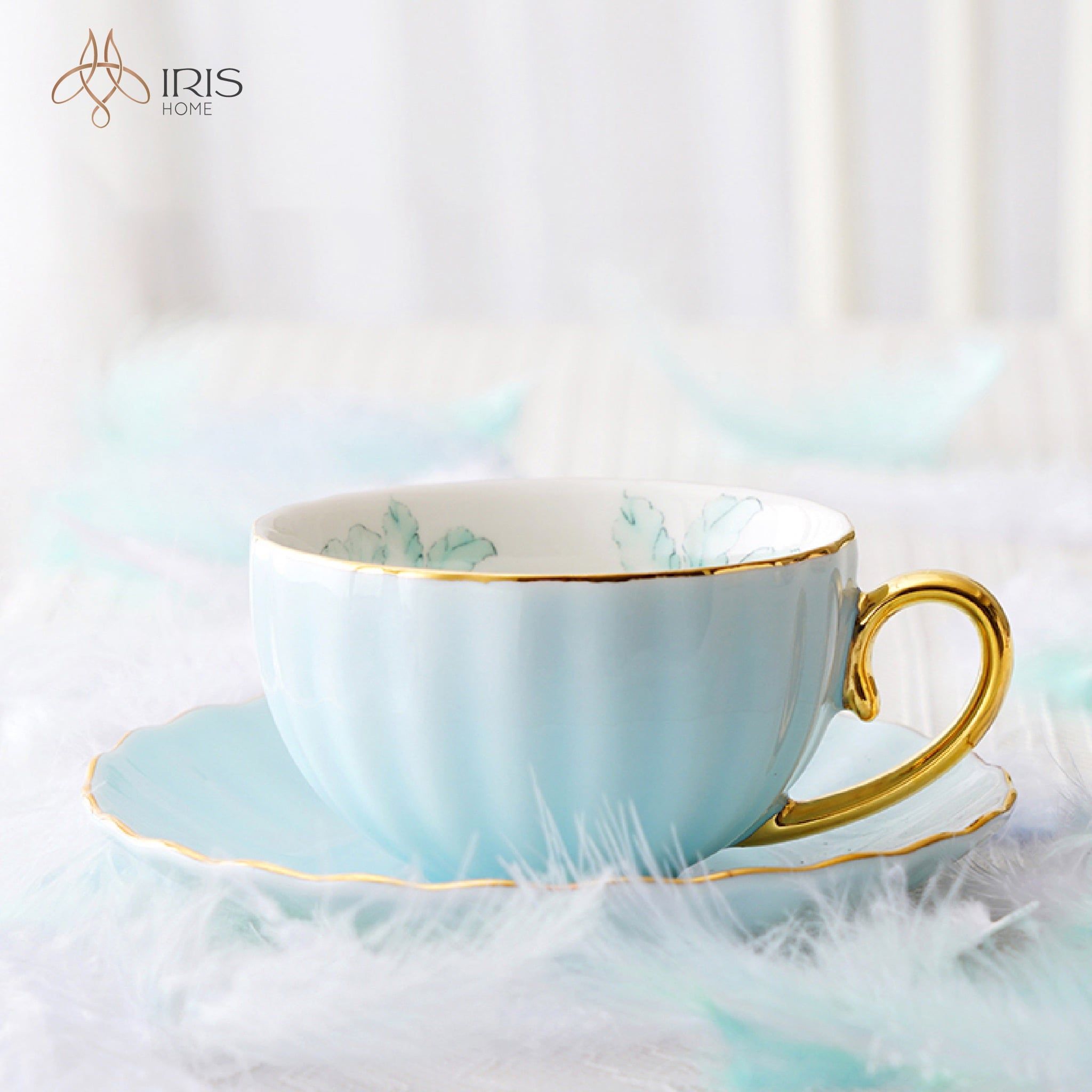 Tên: Sứ tráng men xanh bóng, chi tiết vàng vẽ tay 1000ml