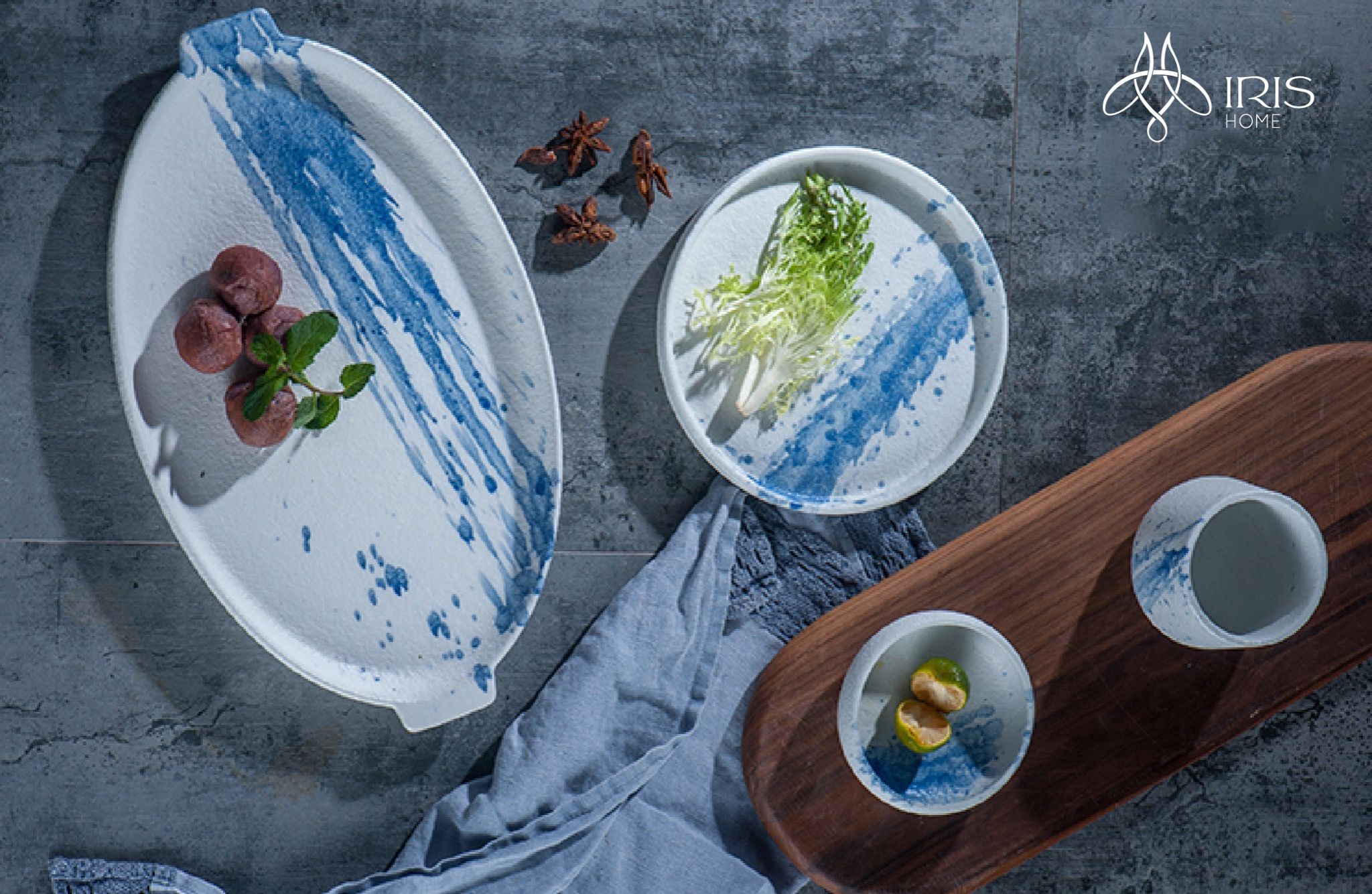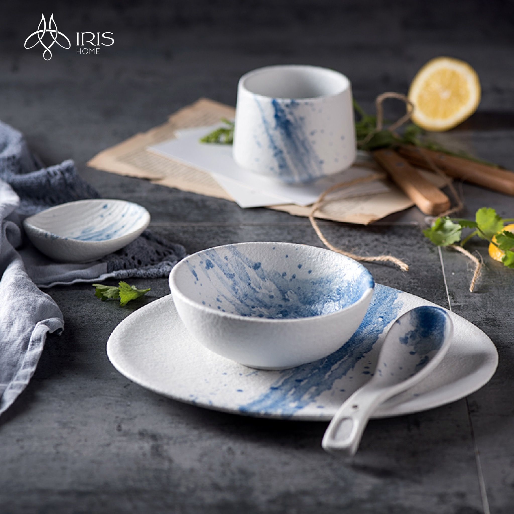Bộ bát đĩa gốm sứ tạo phôi thủ công, men phun sơn