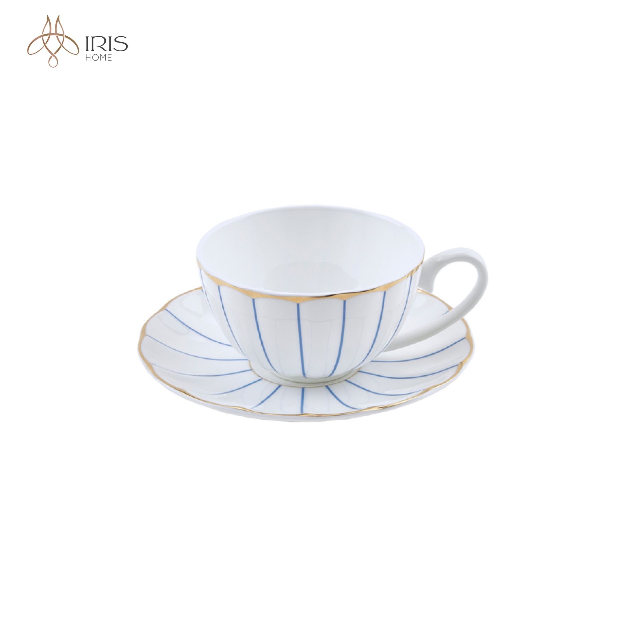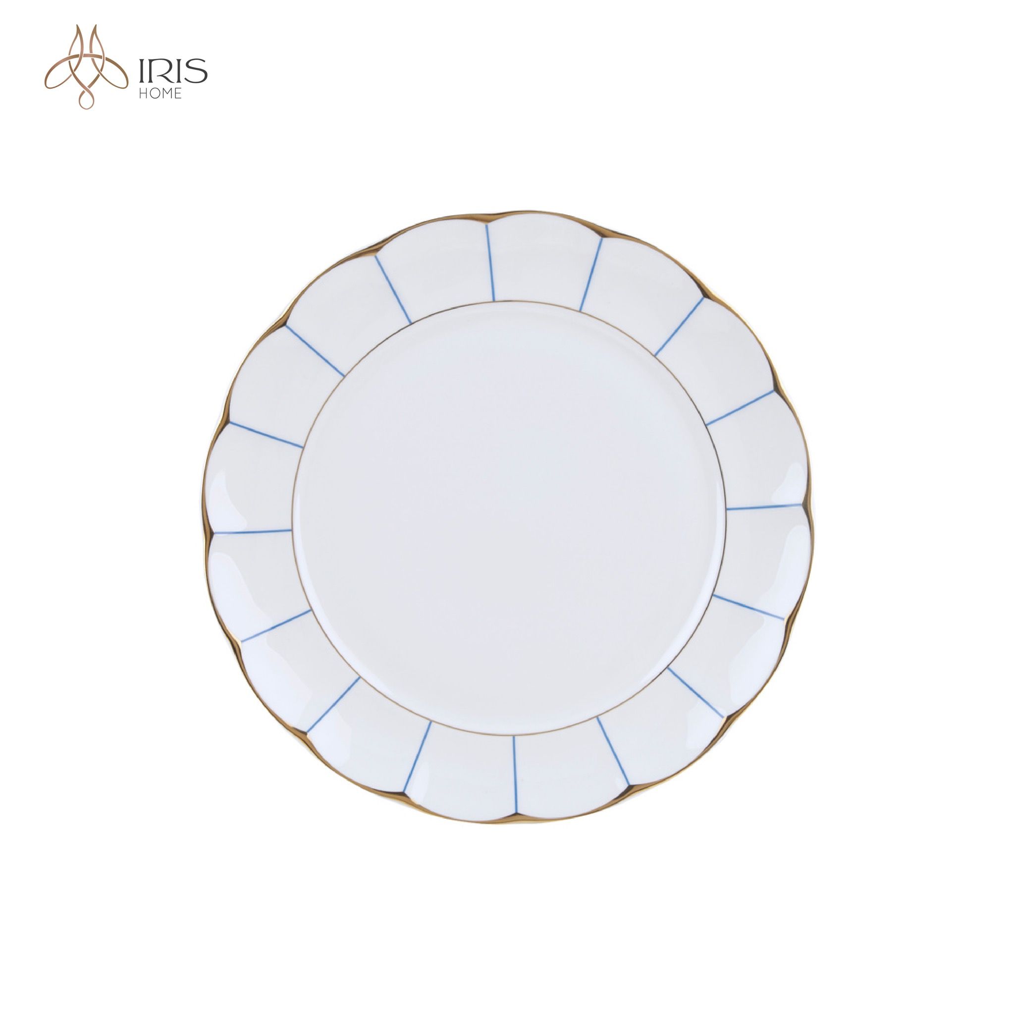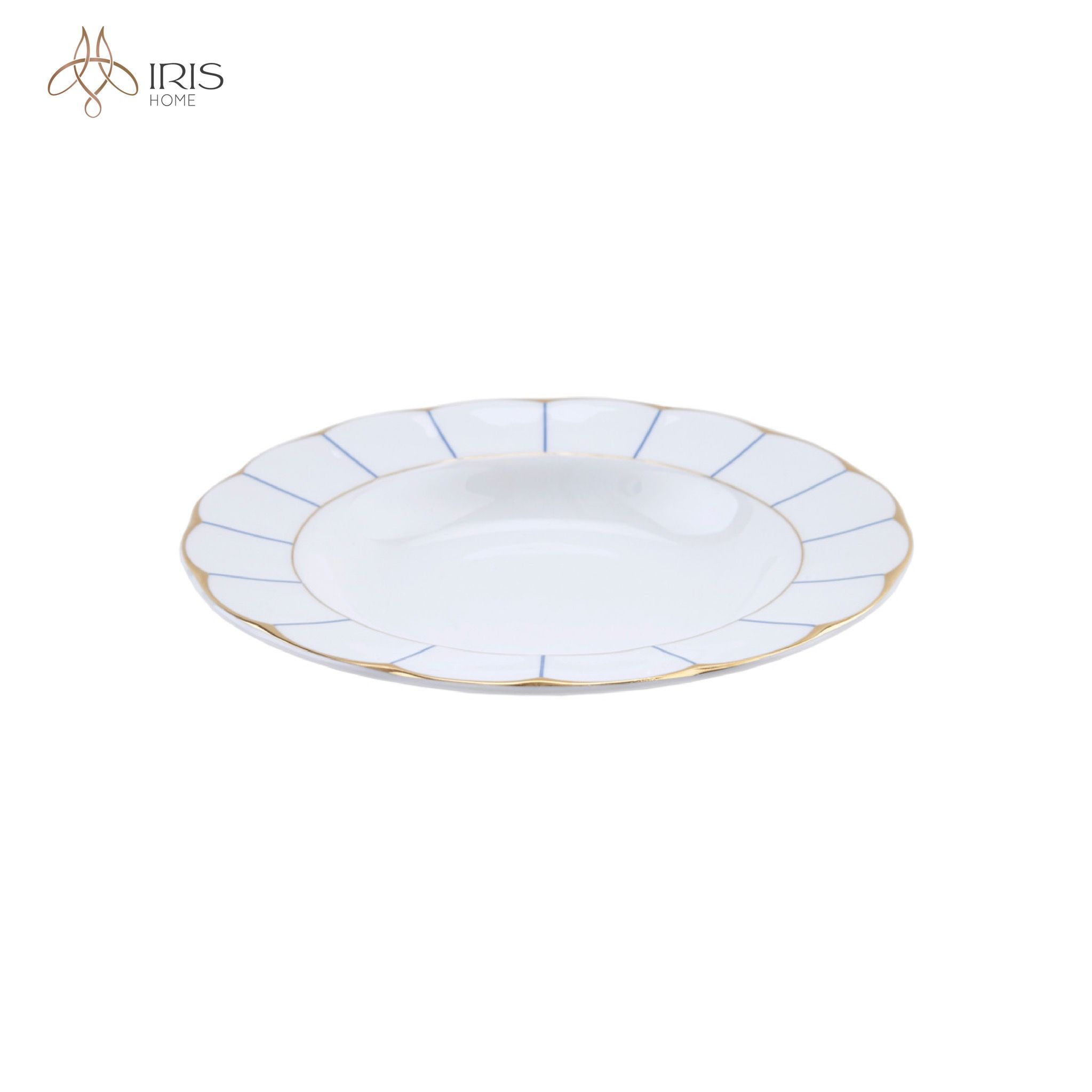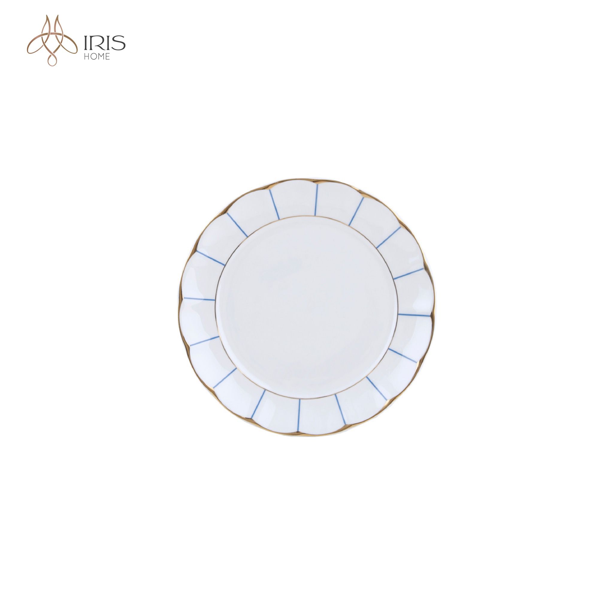 Bộ bát đĩa sứ xương viền xanh vàng vẽ tay