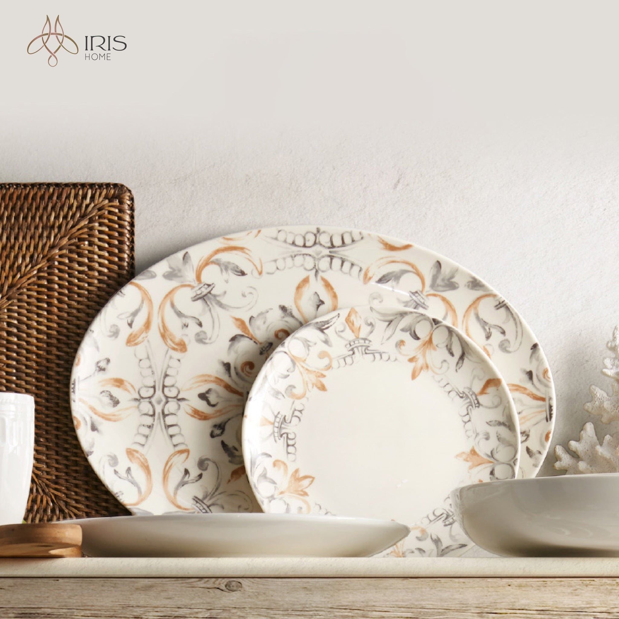 Tên: Bộ đĩa gốm sứ dây hoa văn nâu đối xứng