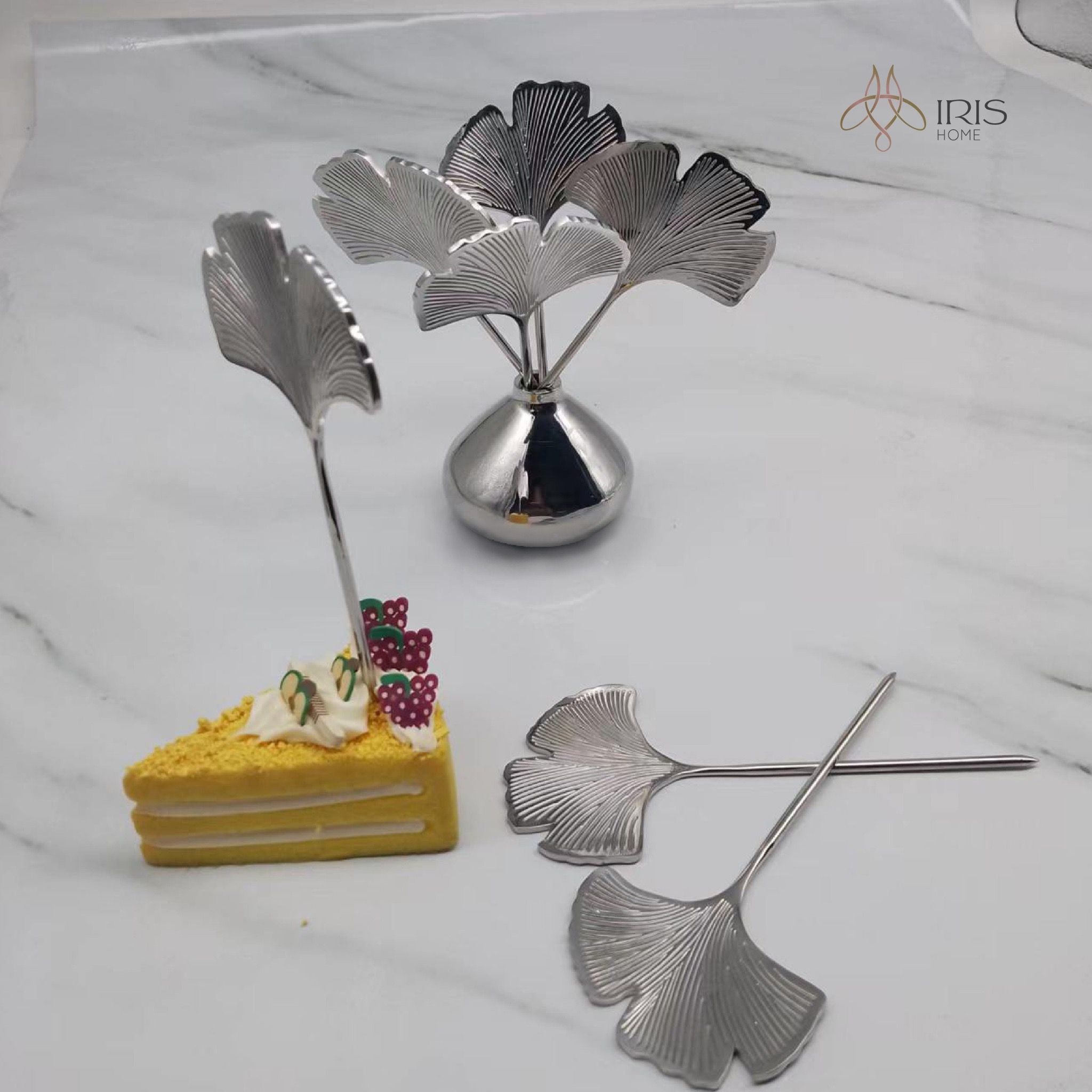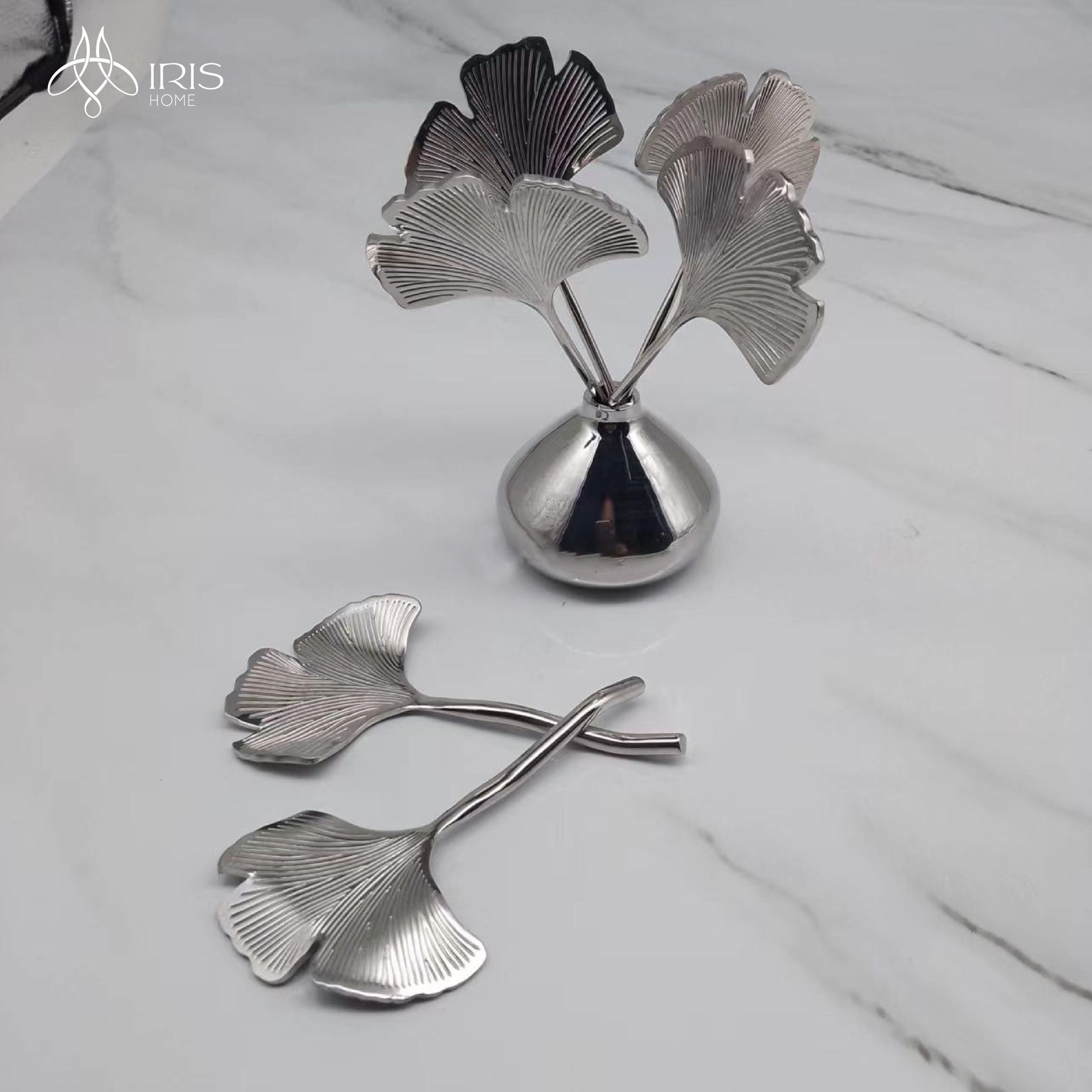 Bộ dĩa hoa quả hình lá ngân hạnh mạ bạc