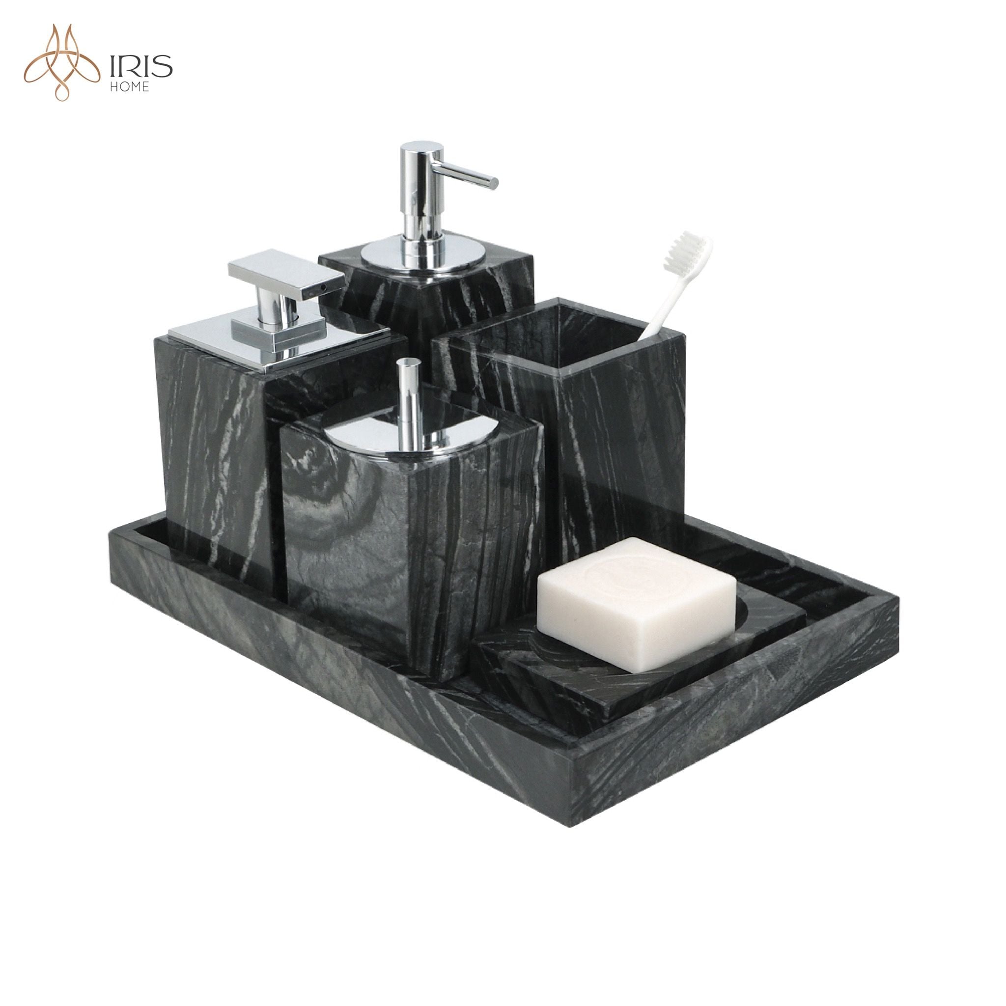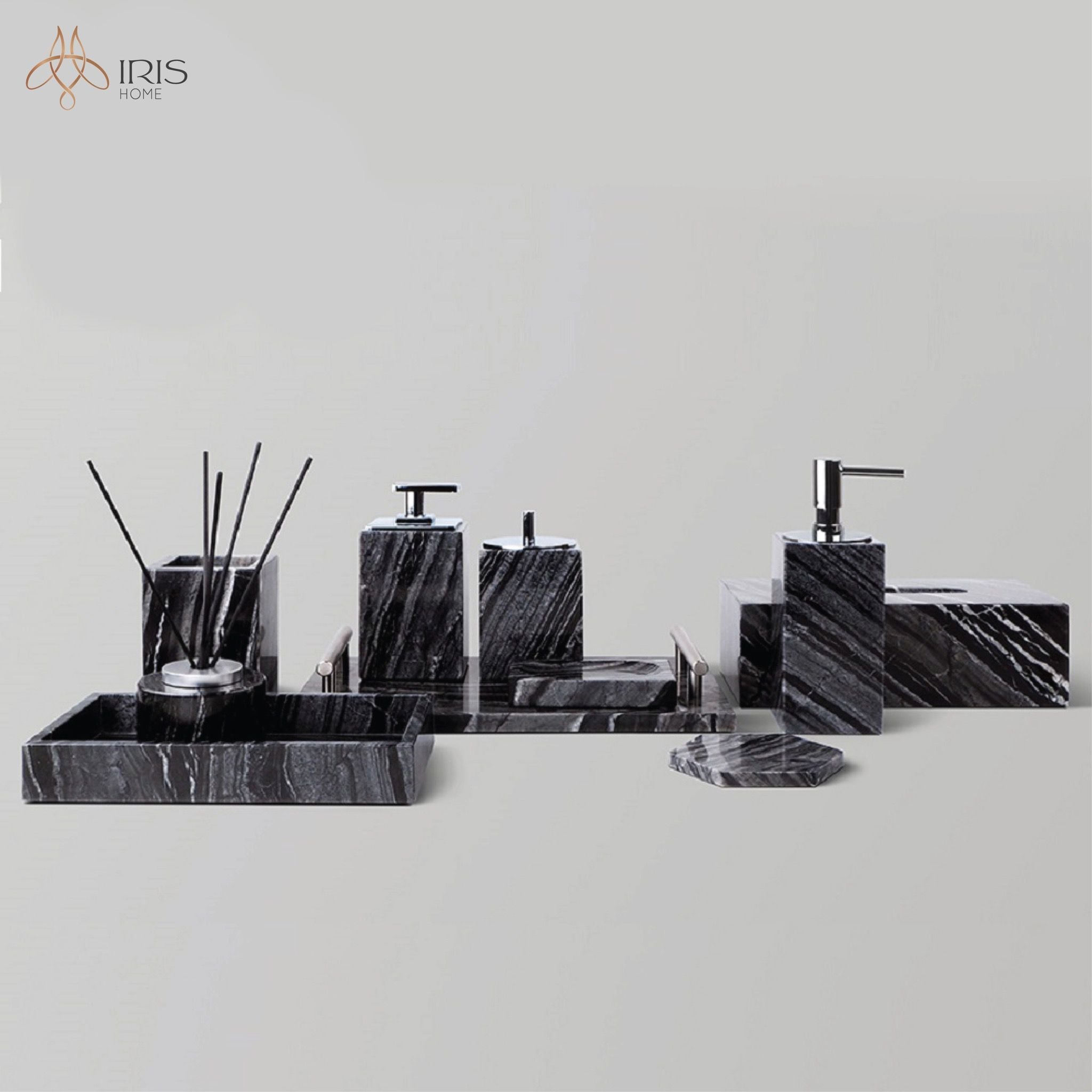 Bộ đồ dùng nhà tắm đá cẩm thạch đen vân gỗ