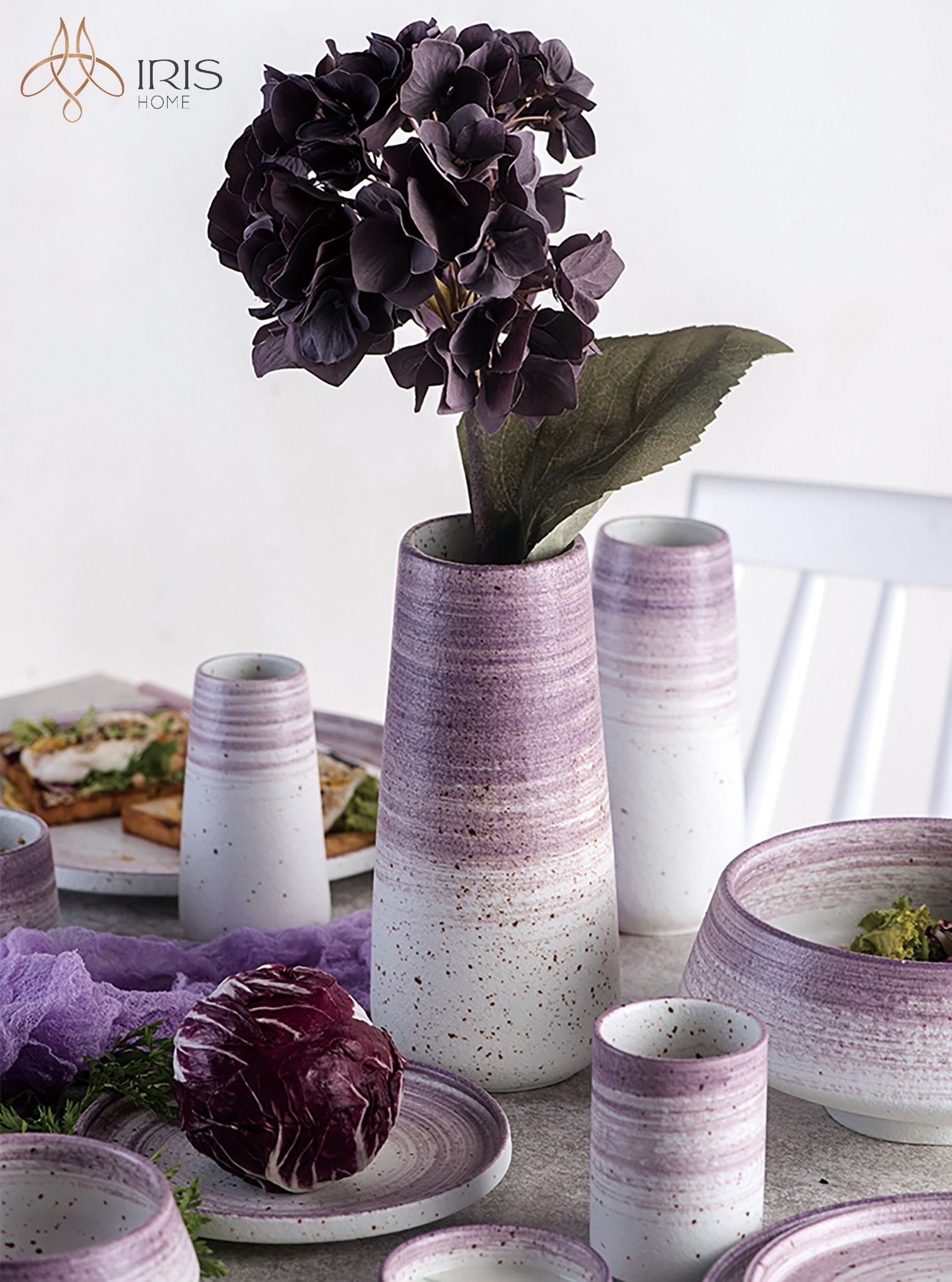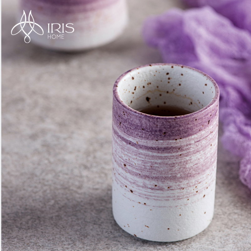 Tên: Cốc nước sứ chi tiết trang trí gradient tím thủ công