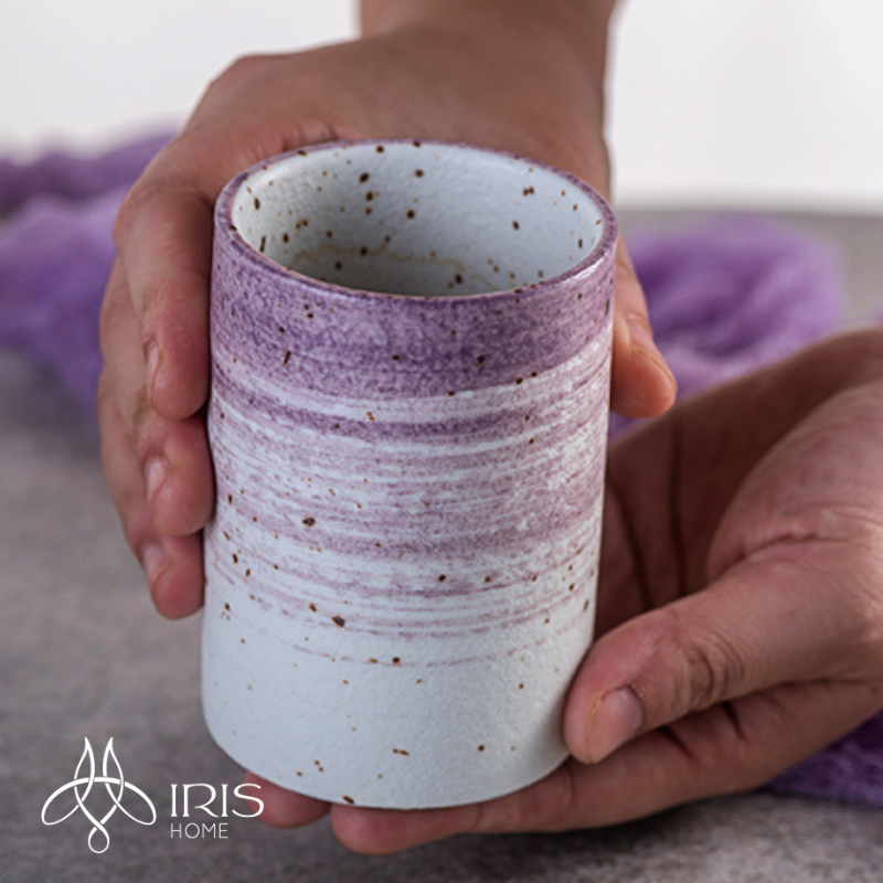 Cốc nước sứ chi tiết trang trí gradient tím thủ công