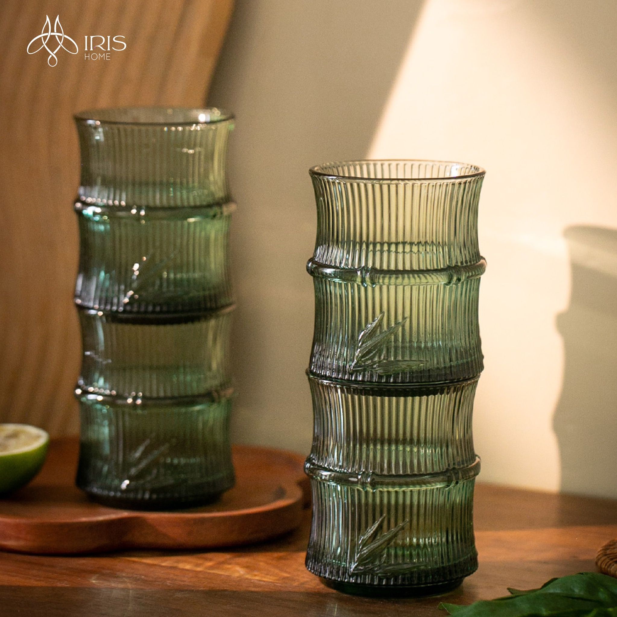 Cốc nước thuỷ tinh hình đốt tre xanh 260ml