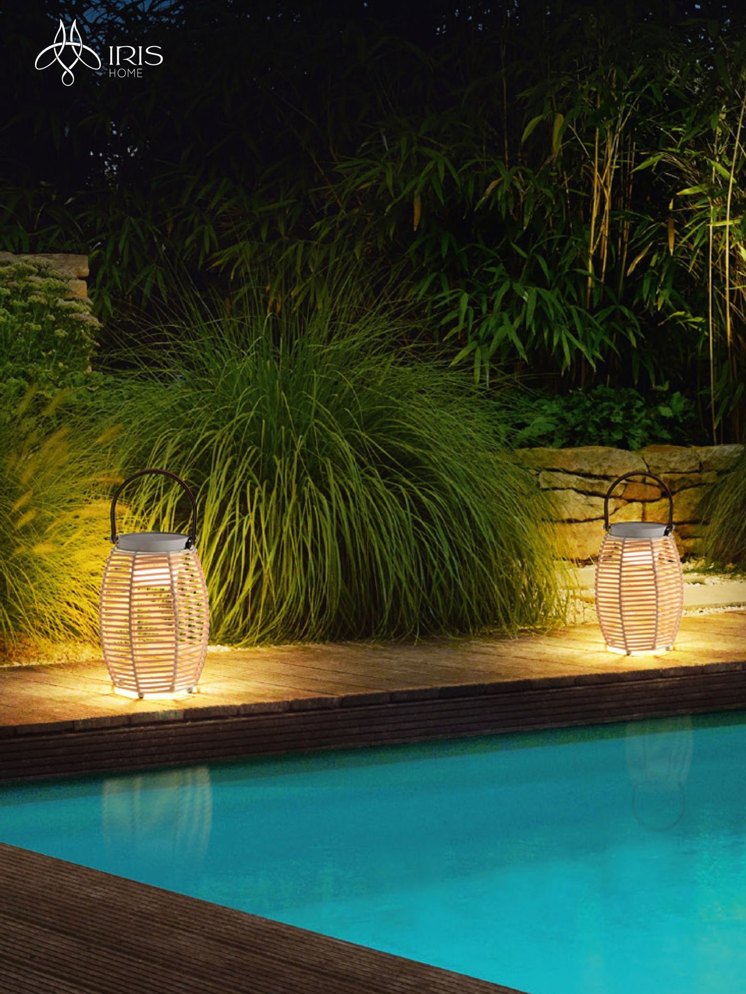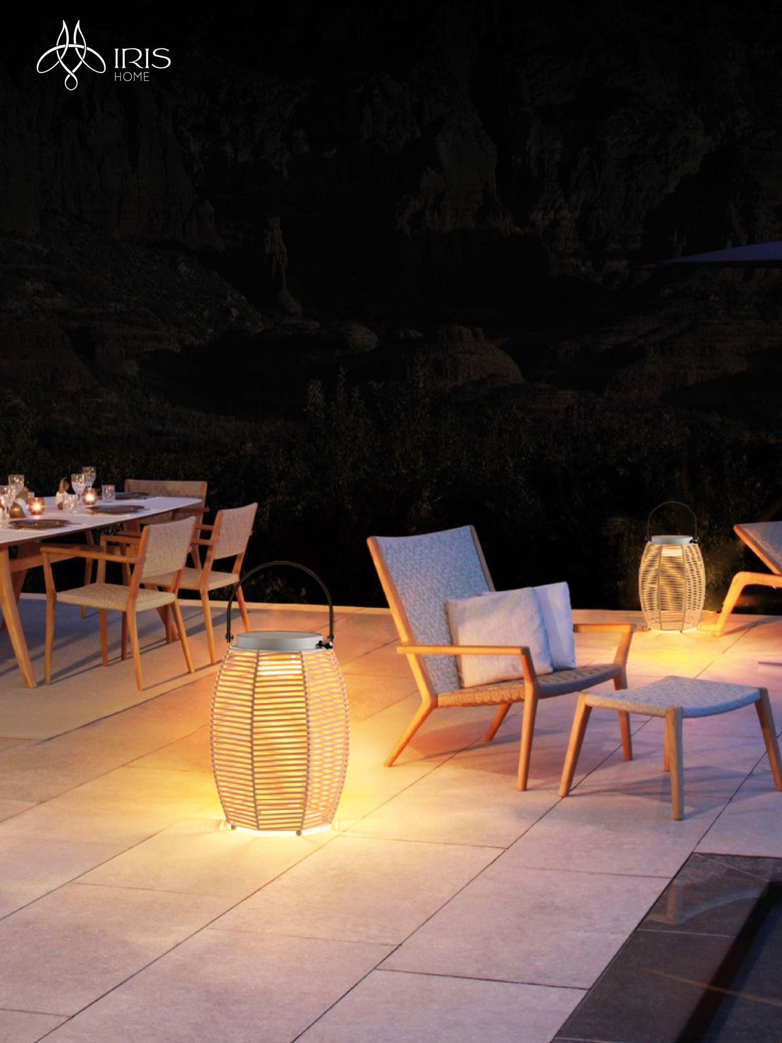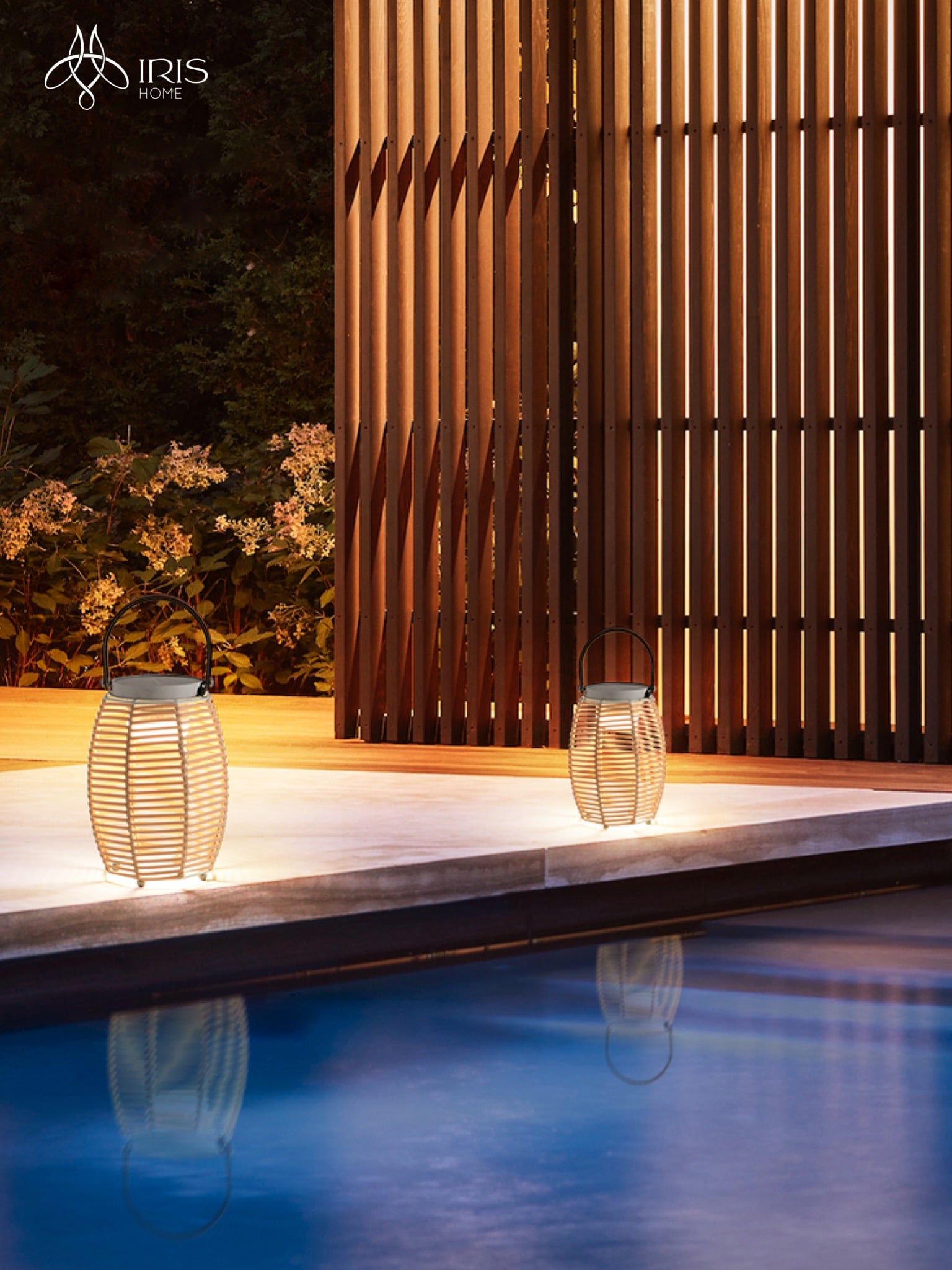 Chất liệu: Thân thép không gỉ, mây đan. IP54 chống bụi chống nước