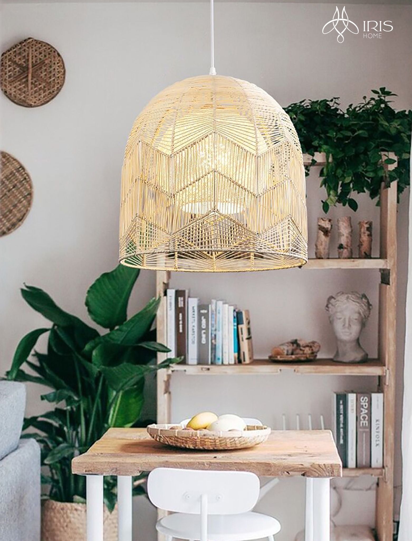 Chất liệu: Mây đan tay. Dài dây 100cm. Sử dụng bóng đèn LED E27