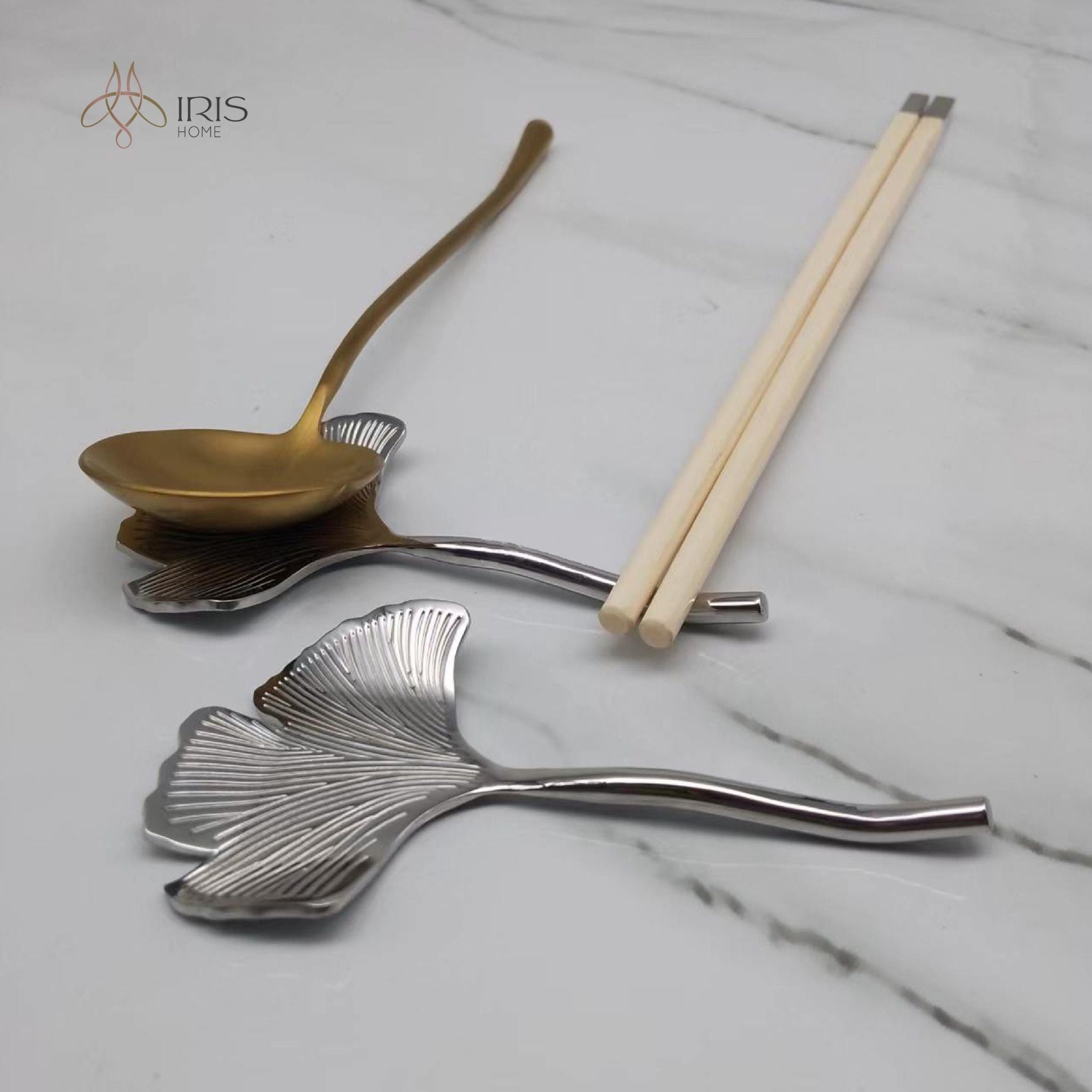 Gác đũa hình lá ngân hạnh mạ bạc