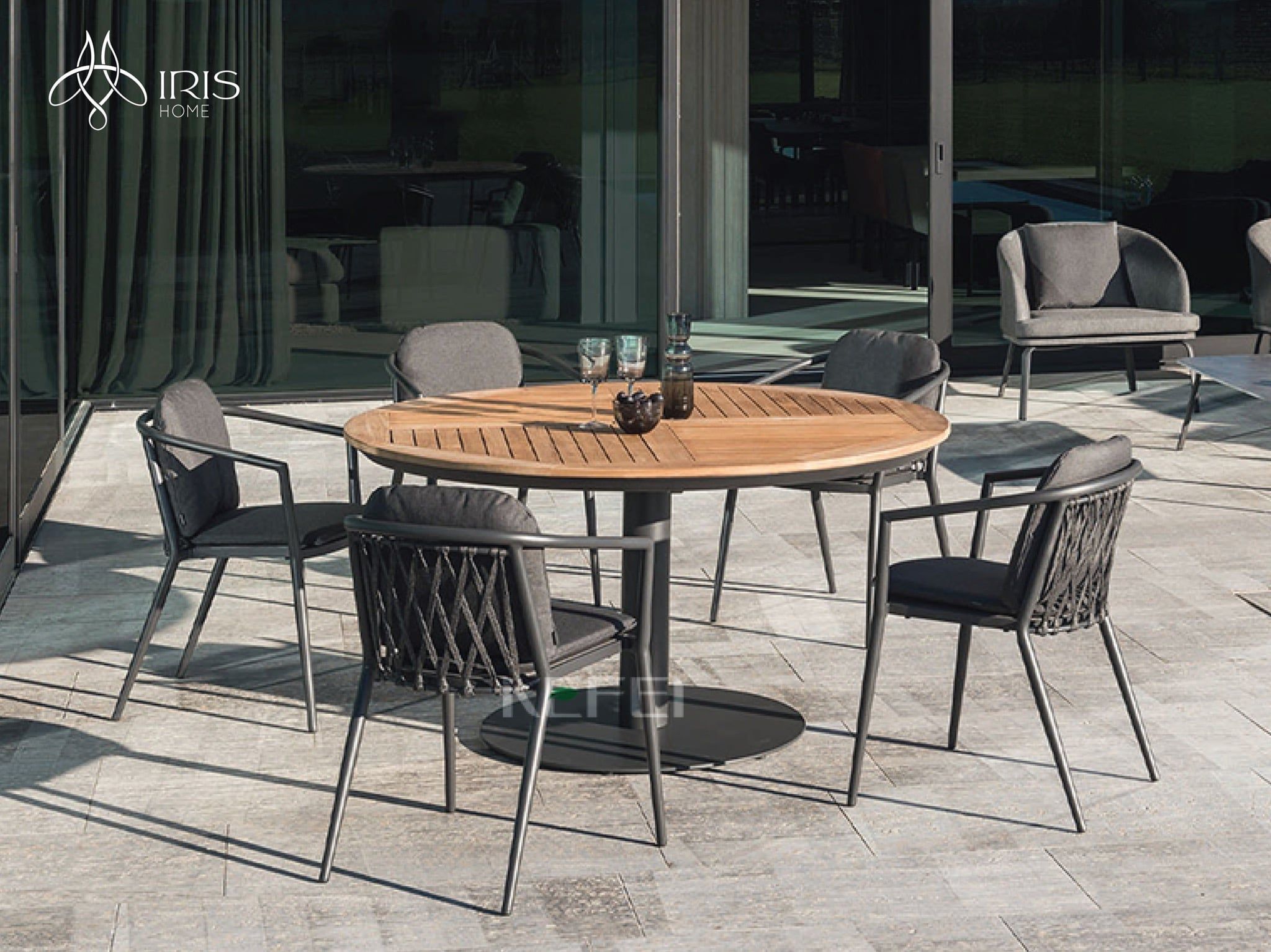 Ghế ngoài trời aluminium, lưng dây bện thừng
