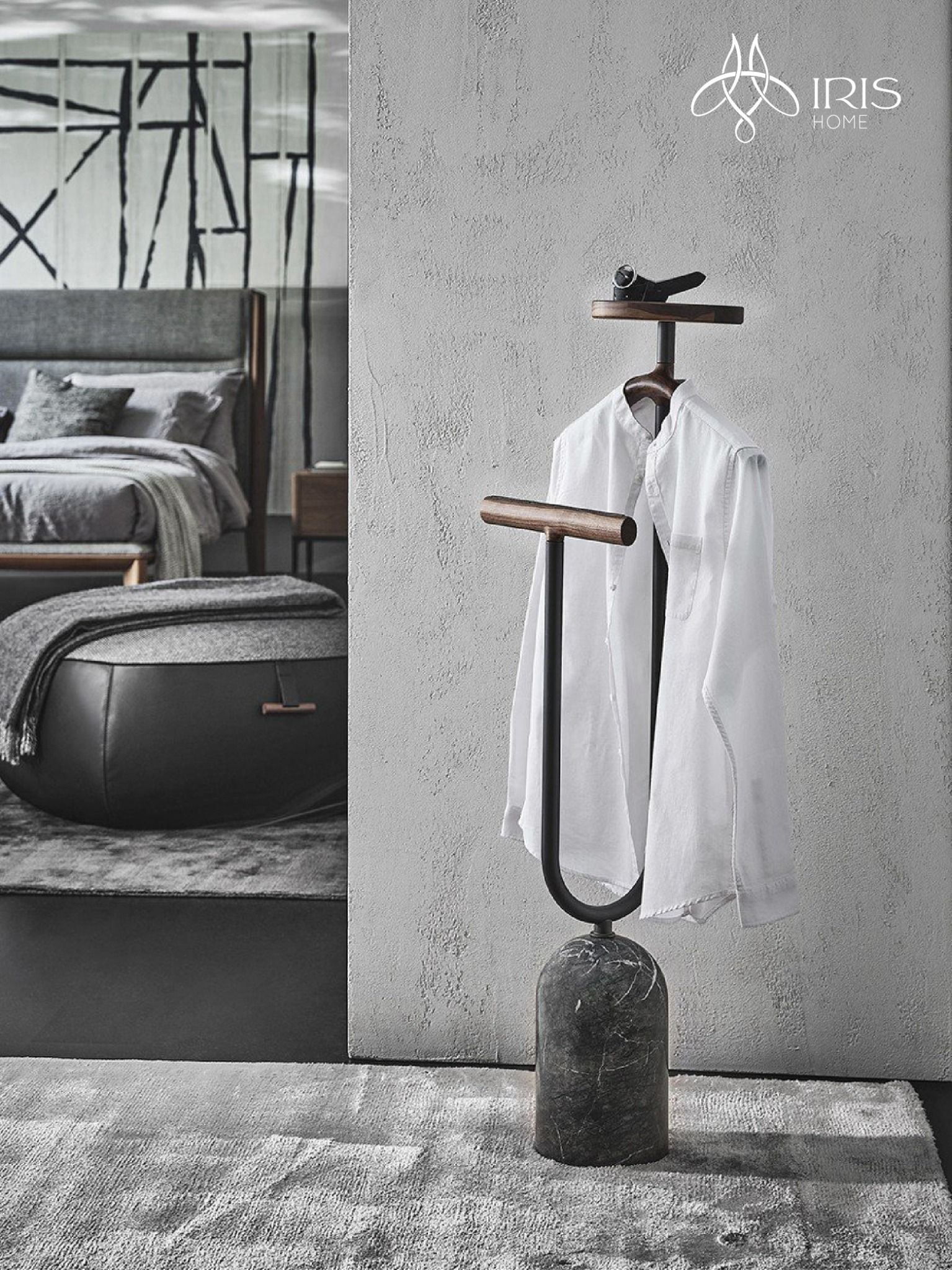 Tên: Giá treo áo gỗ, khung kim loại, đế đá marble đen