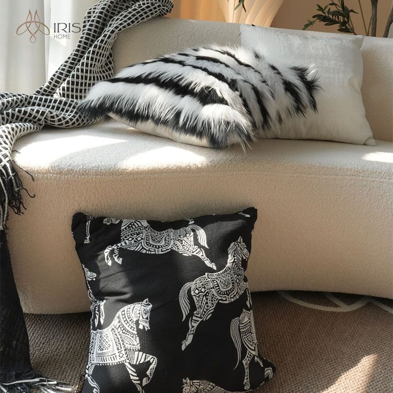 Gối vải lông tự nhiên trắng nền đen
