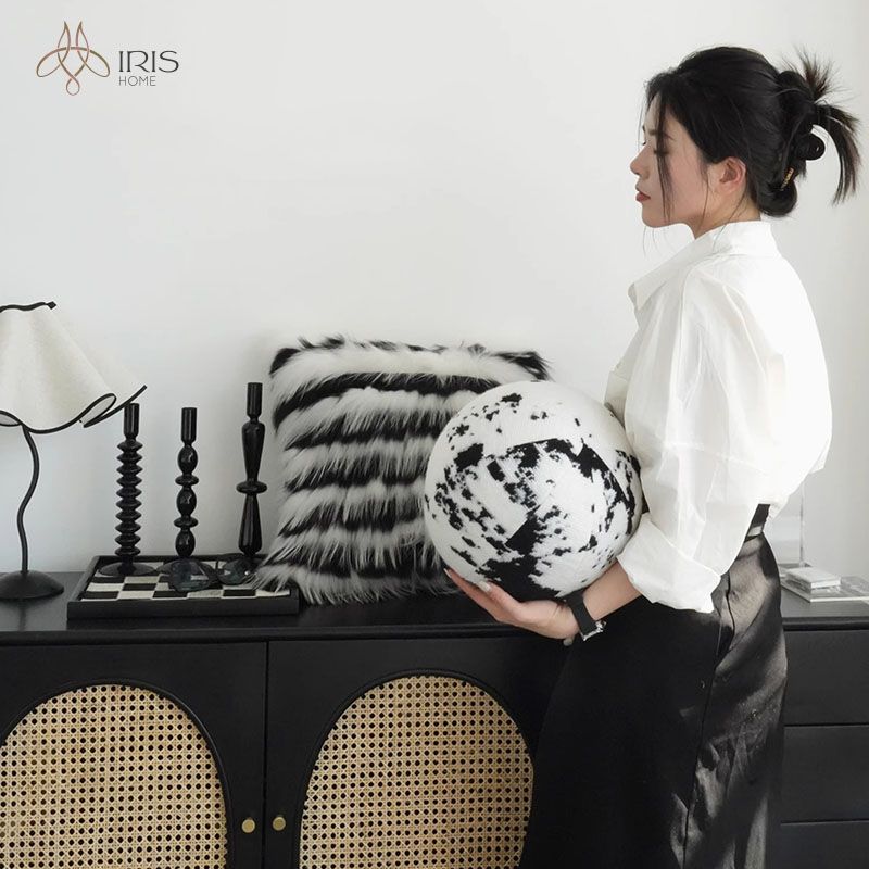 Tên: Gối vải lông tự nhiên trắng nền đen
