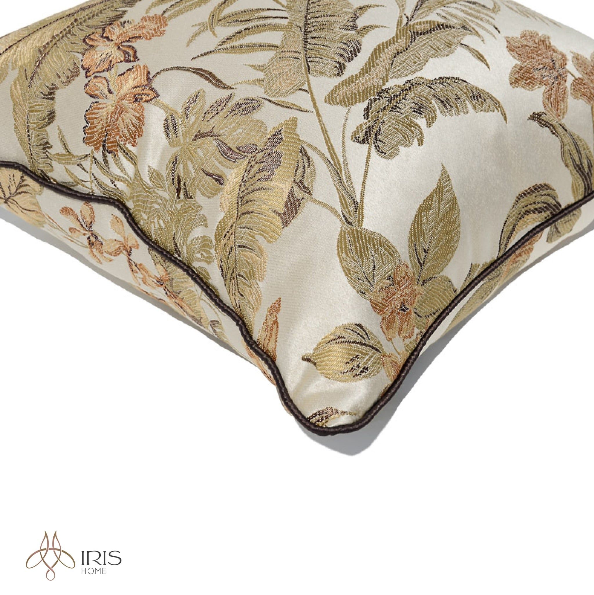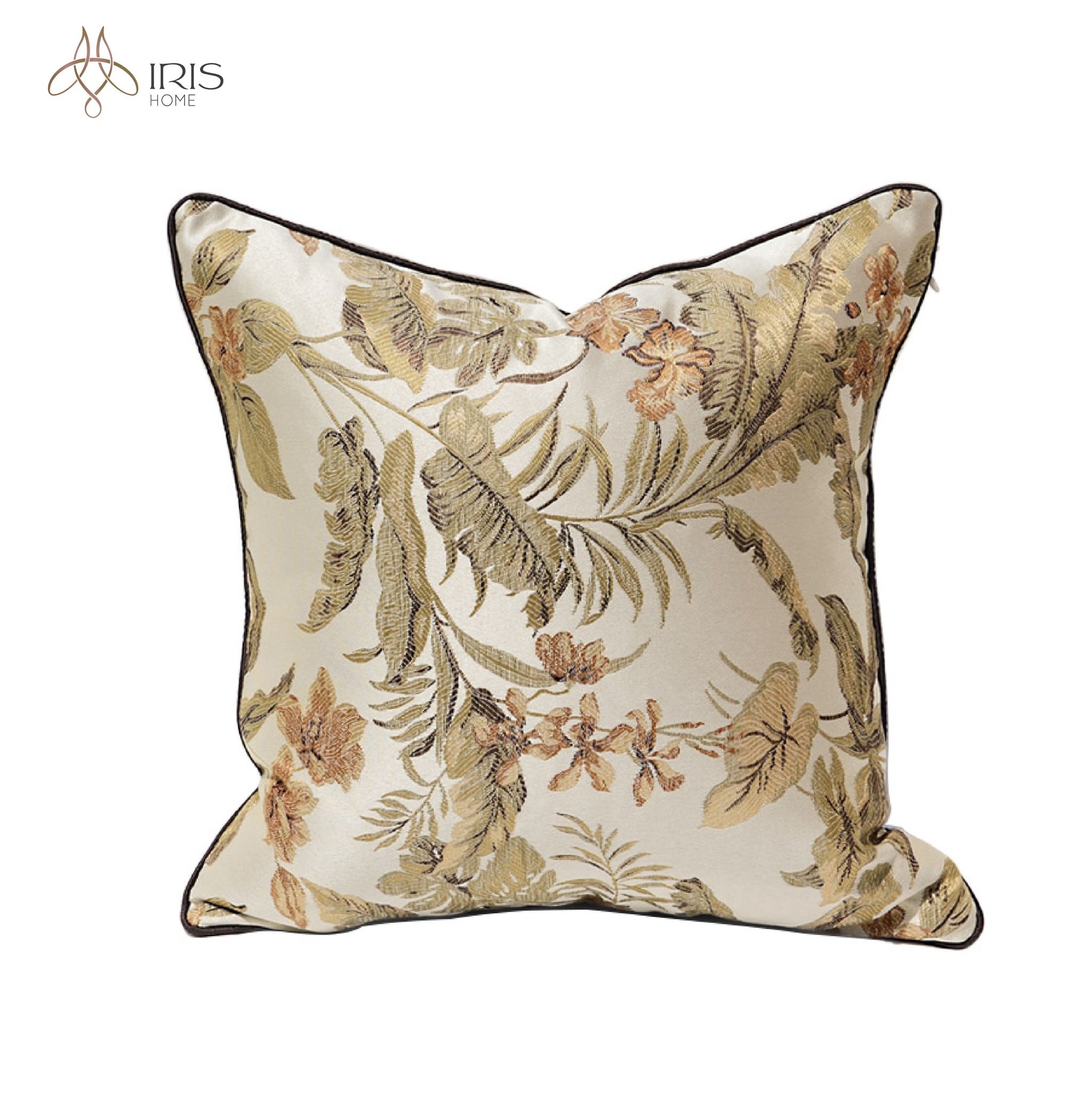 Gối vải lụa thêu hoa tone vàng nâu