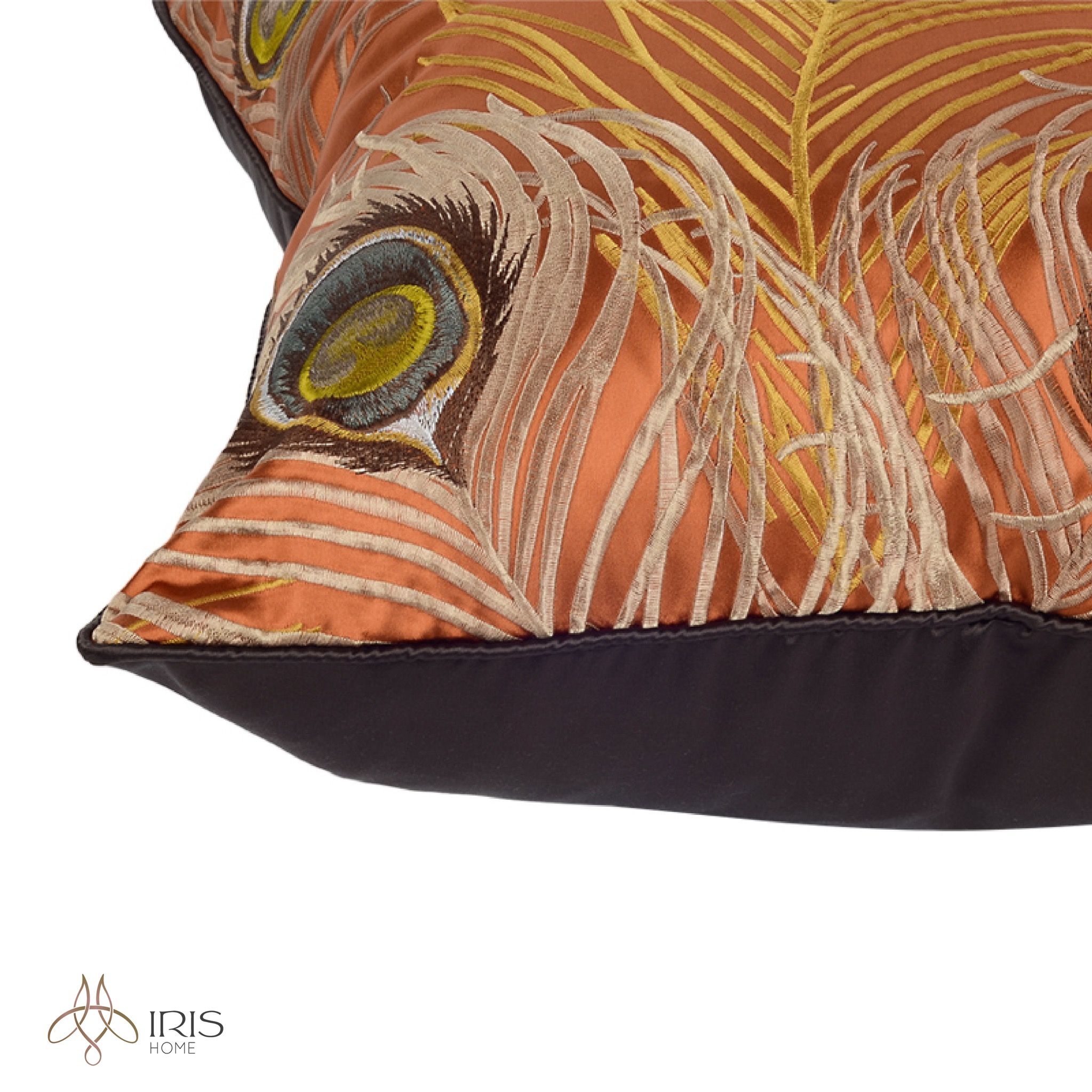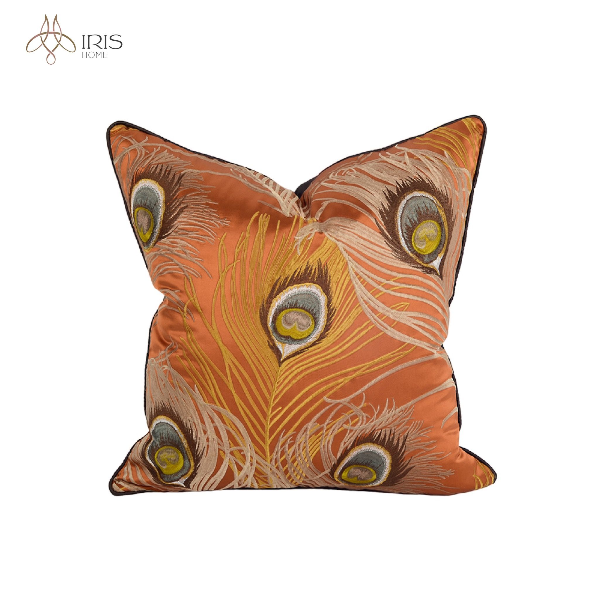 Gối vải satin thêu hoạ tiết lông công