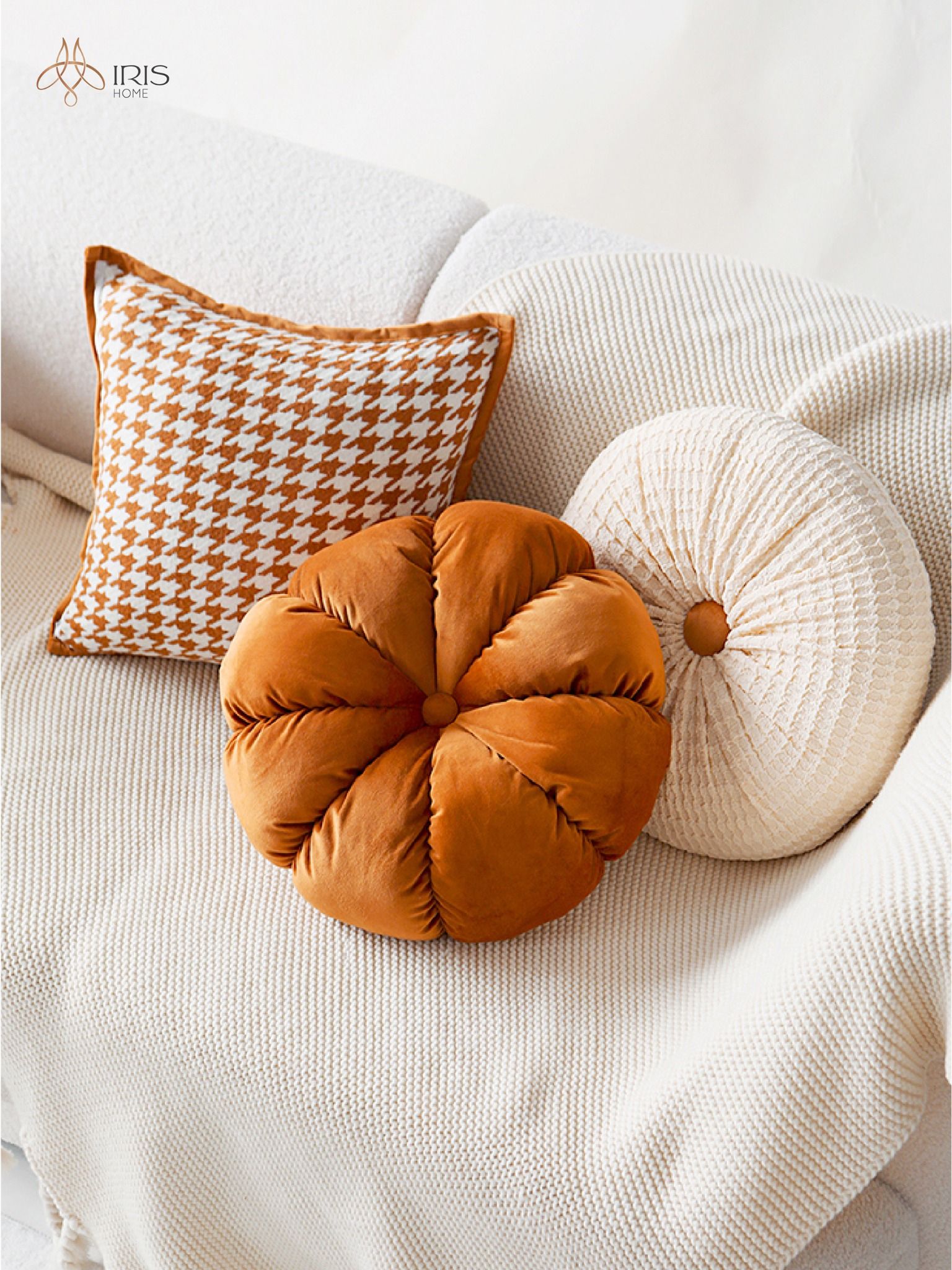 Gối vải tạo hình hoa vải ánh bóng màu cam nâu