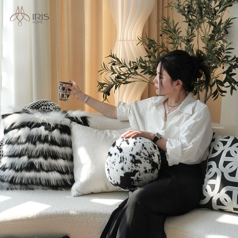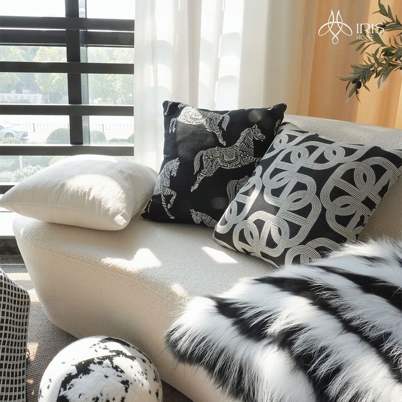 Tên: Gối vải vuông in hoạ tiết đường vòng trắng nền đen