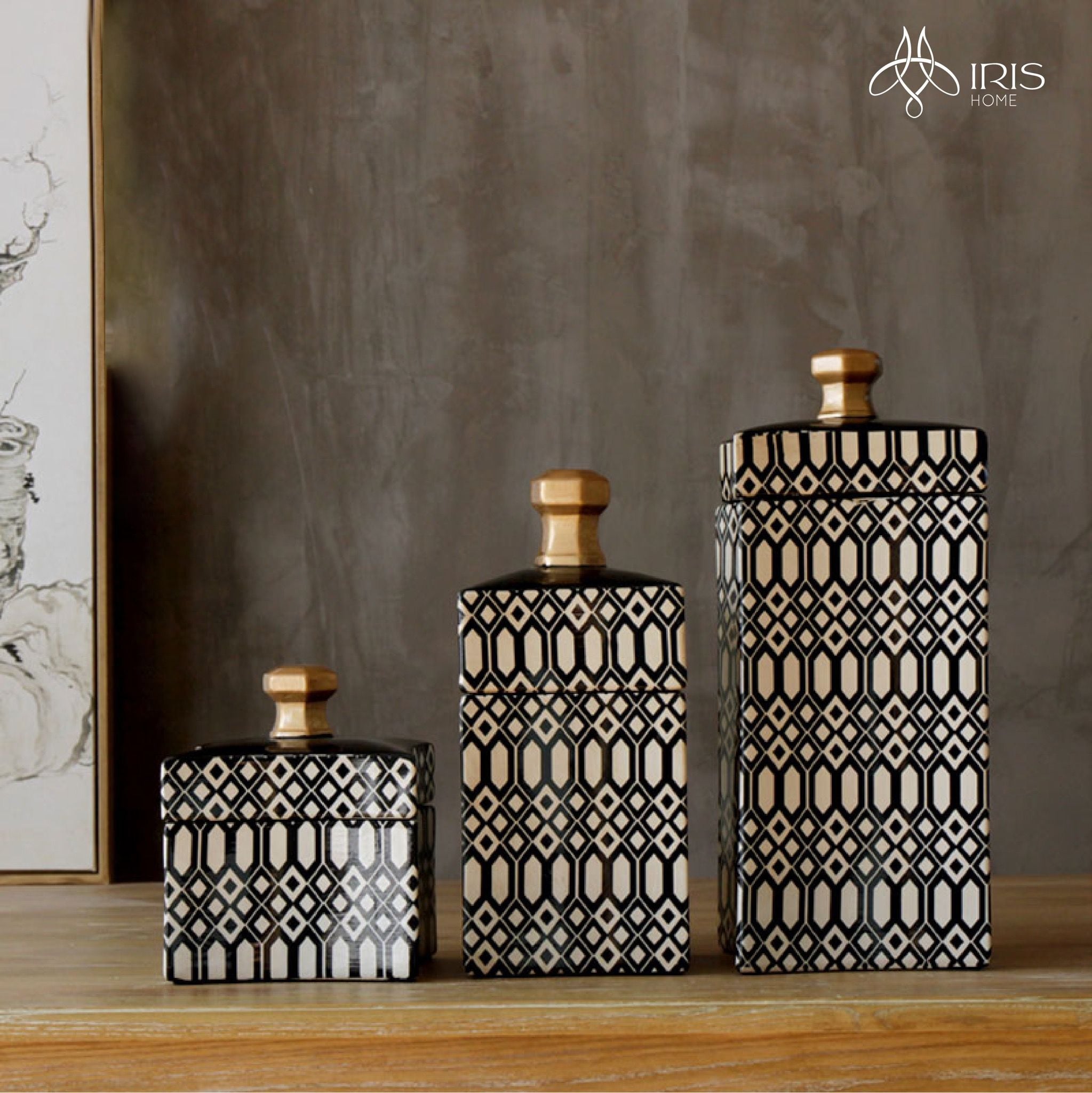 Tên: Hũ đựng vuông có nắp bằng gốm sứ thủ công