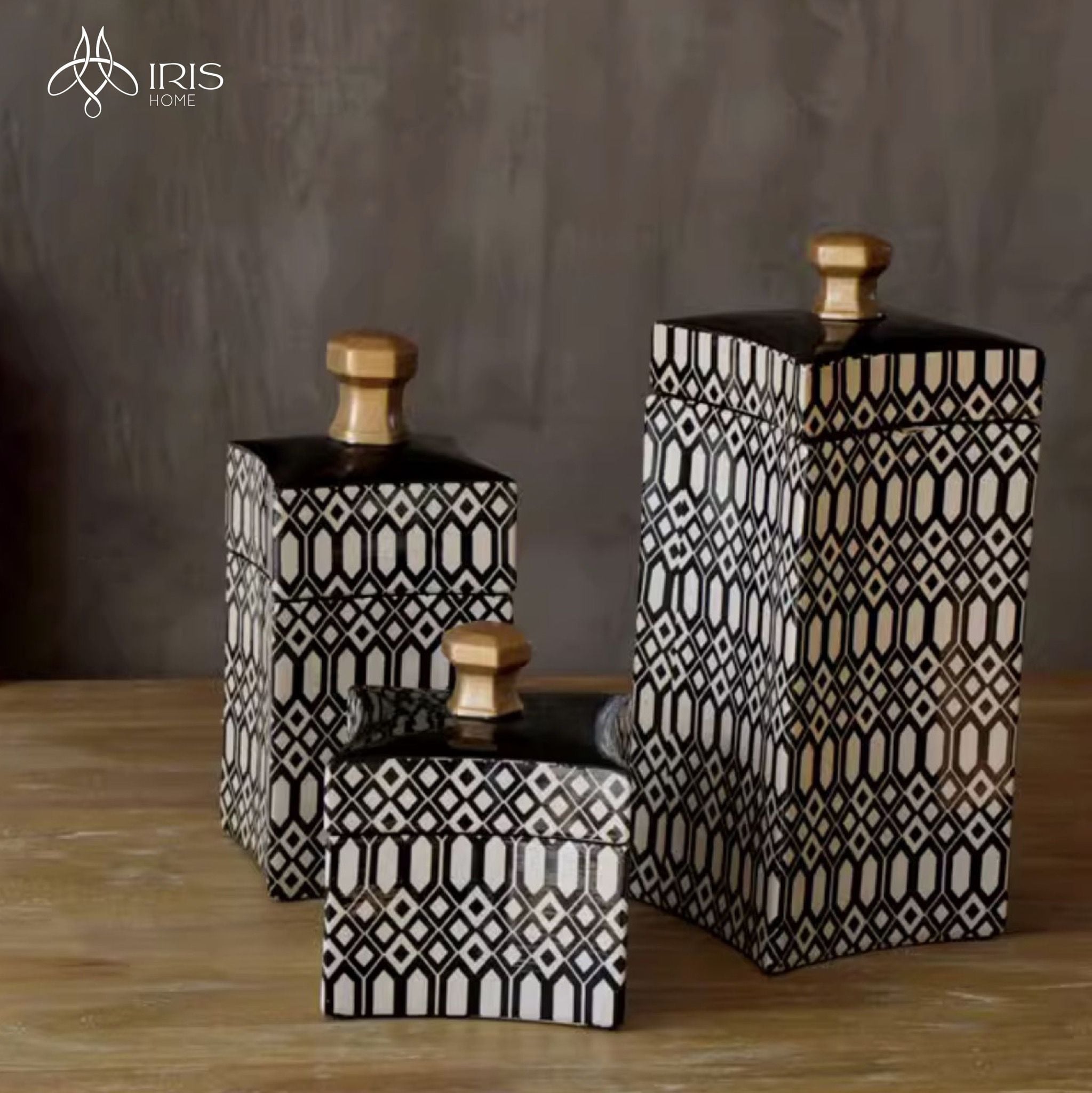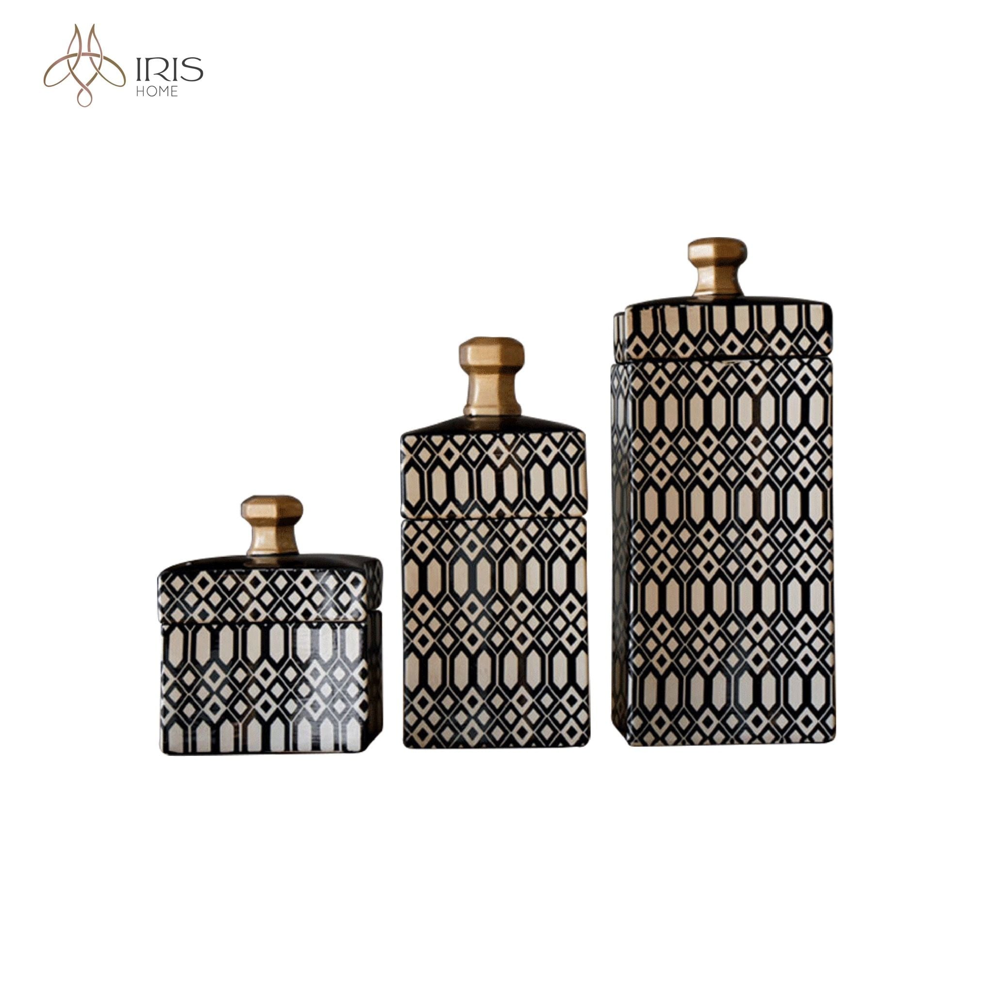 Hũ đựng vuông có nắp bằng gốm sứ thủ công