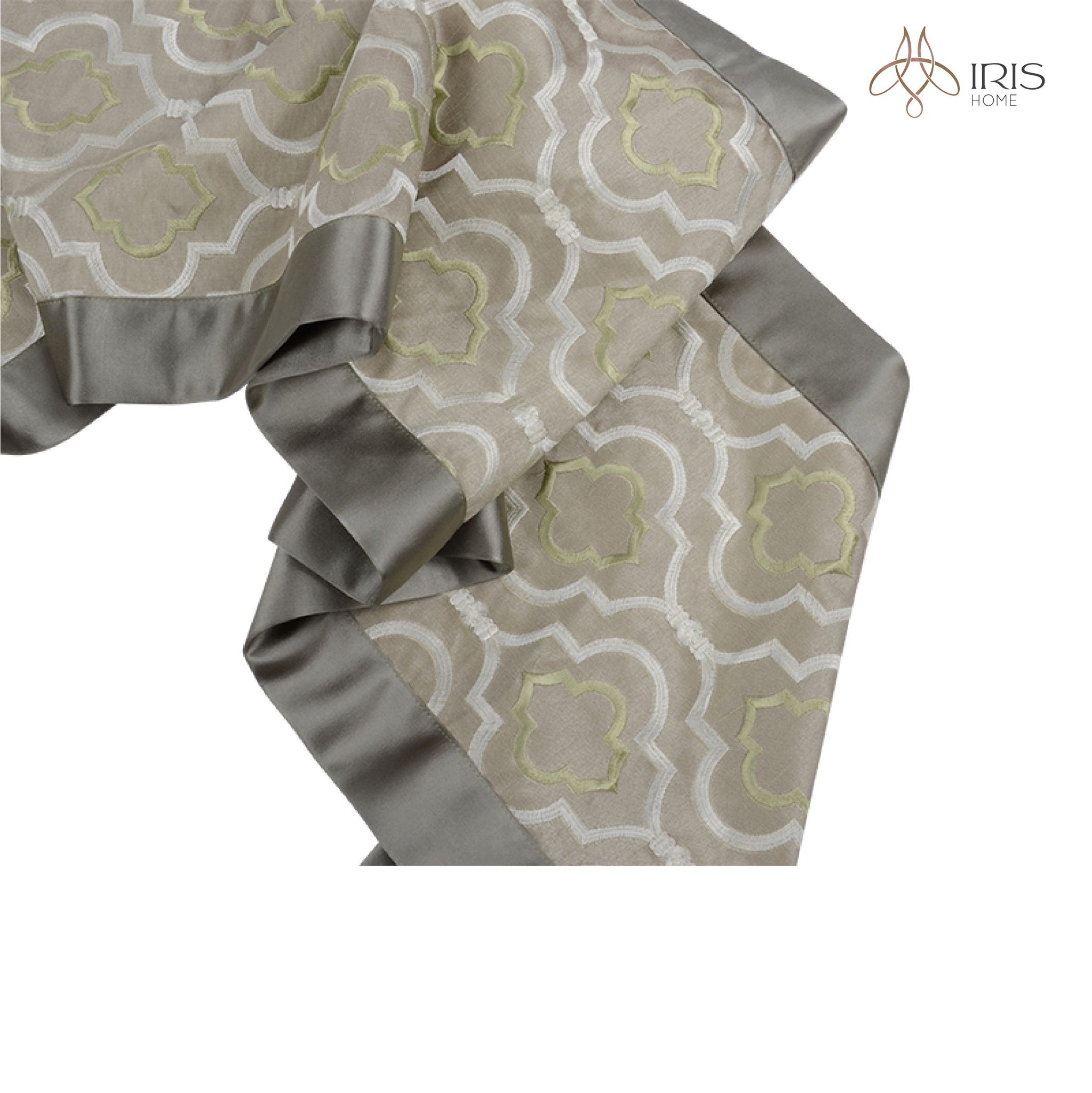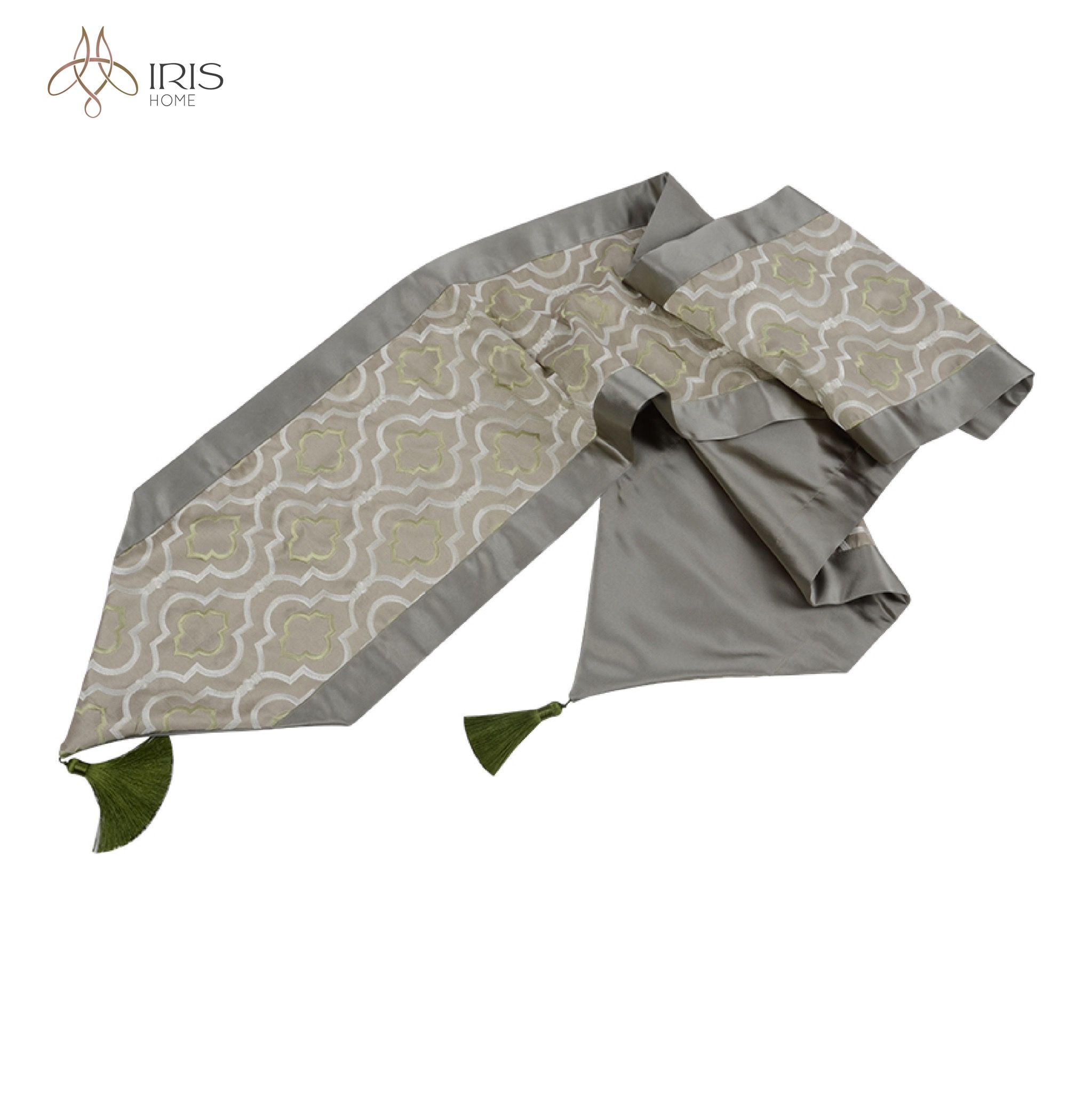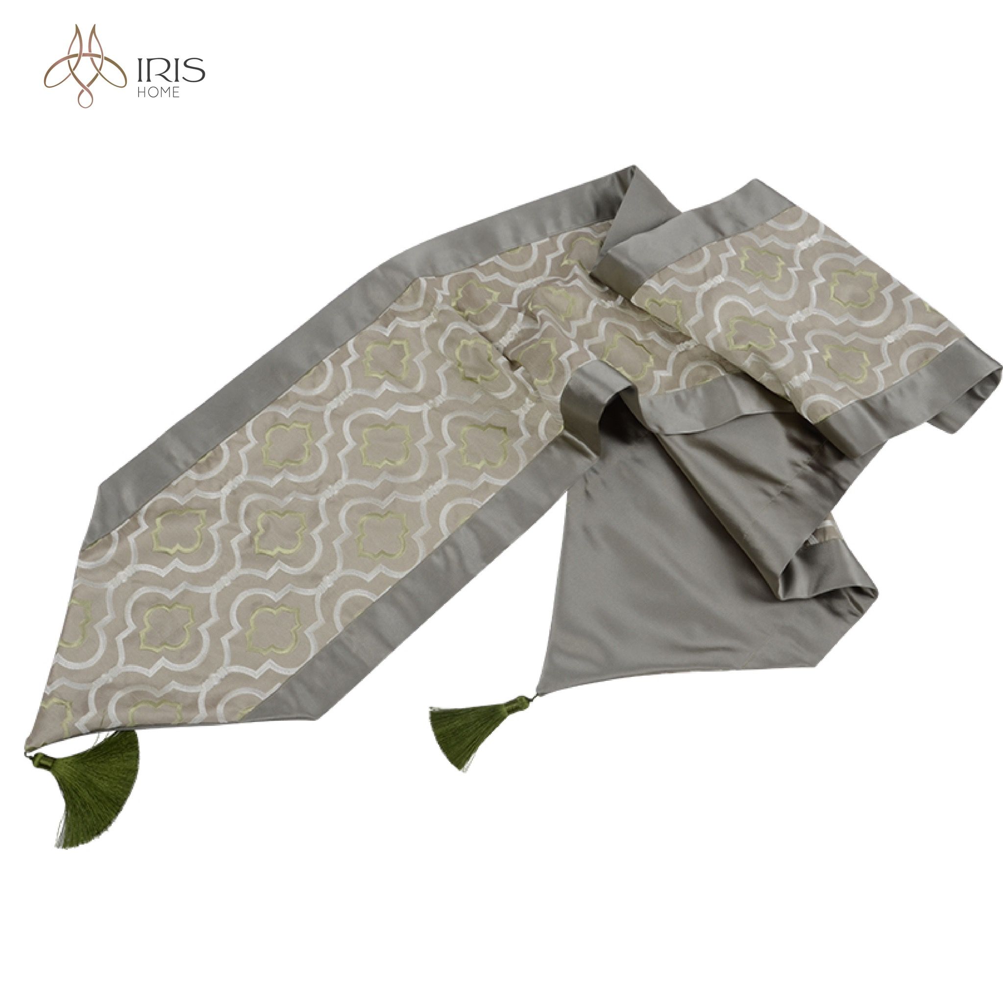 Khăn trải giữa bàn vải lụa thêu hoạ tiết có tua rua