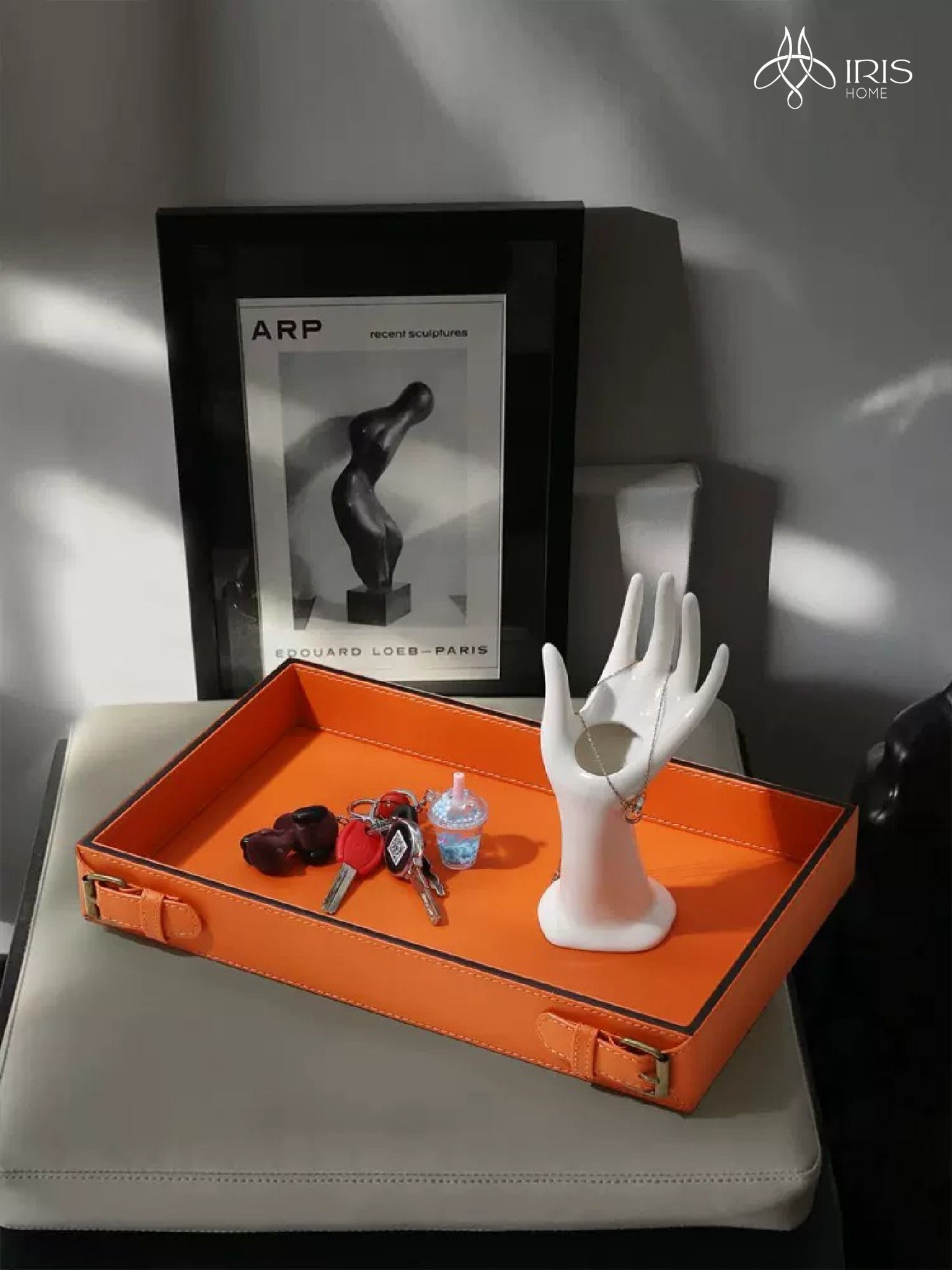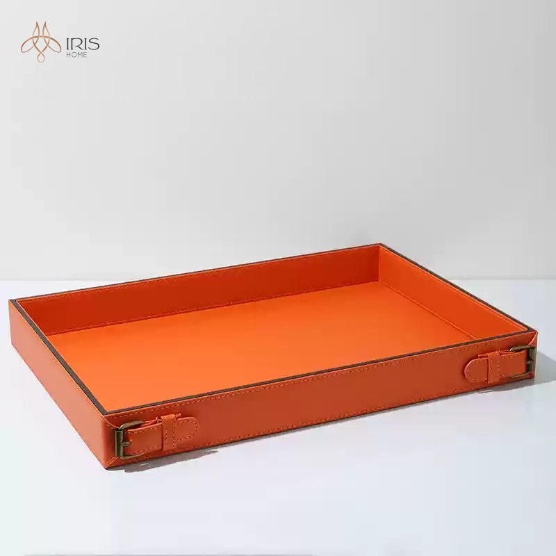 Tên: Khay đựng chữ nhật cam bằng da PU chi tiết đai trên viền khay