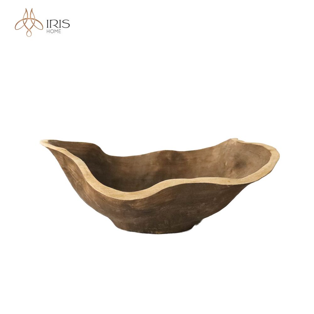 Tên: Khay đựng hoa quả gỗ làm thủ công. Dáng sâu lòng, viền uốn lượn