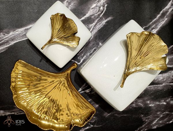 Hộp chữ nhật trắng nắp lá hạnh ngân nhỏ