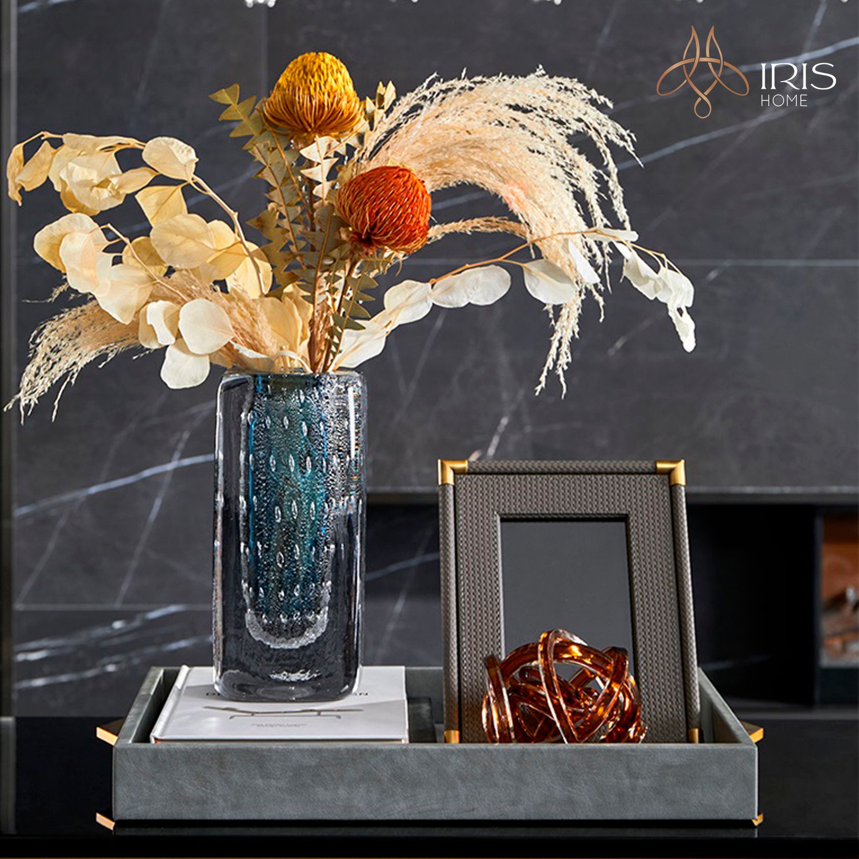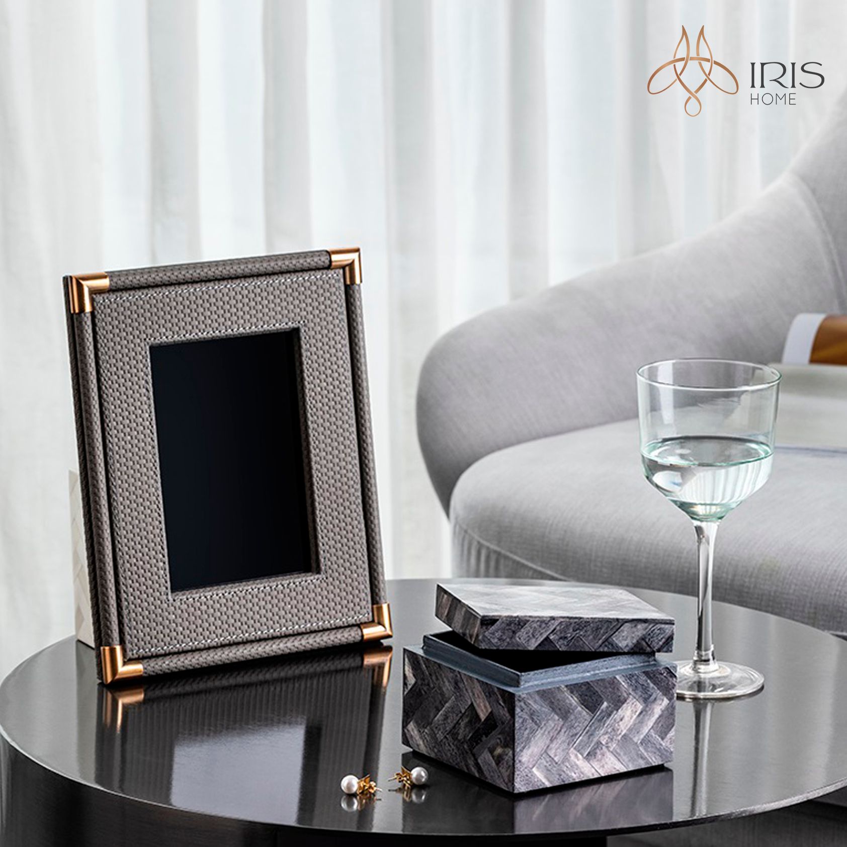 Khung ảnh Smoked Grey có kiểu dáng hiện đại, sang trọng với chất liệu bọc da , khung viền kim loại, phù hợp phong cách Modern Luxury