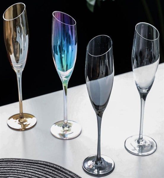 ly thủy linh màu nung uống rượu champagne
