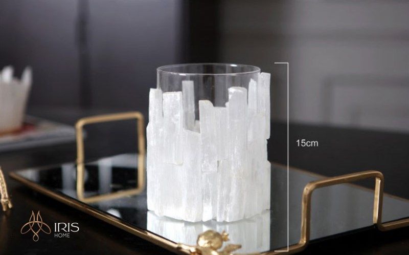 Set chân nến thủy tinh - họa tiết đá thạch anh