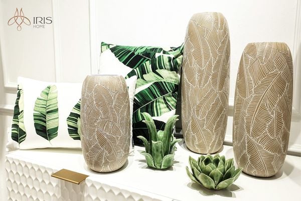 Chât liệu compsite chạm khác họa tiết lá chuối, mang phong cách Á Đông.