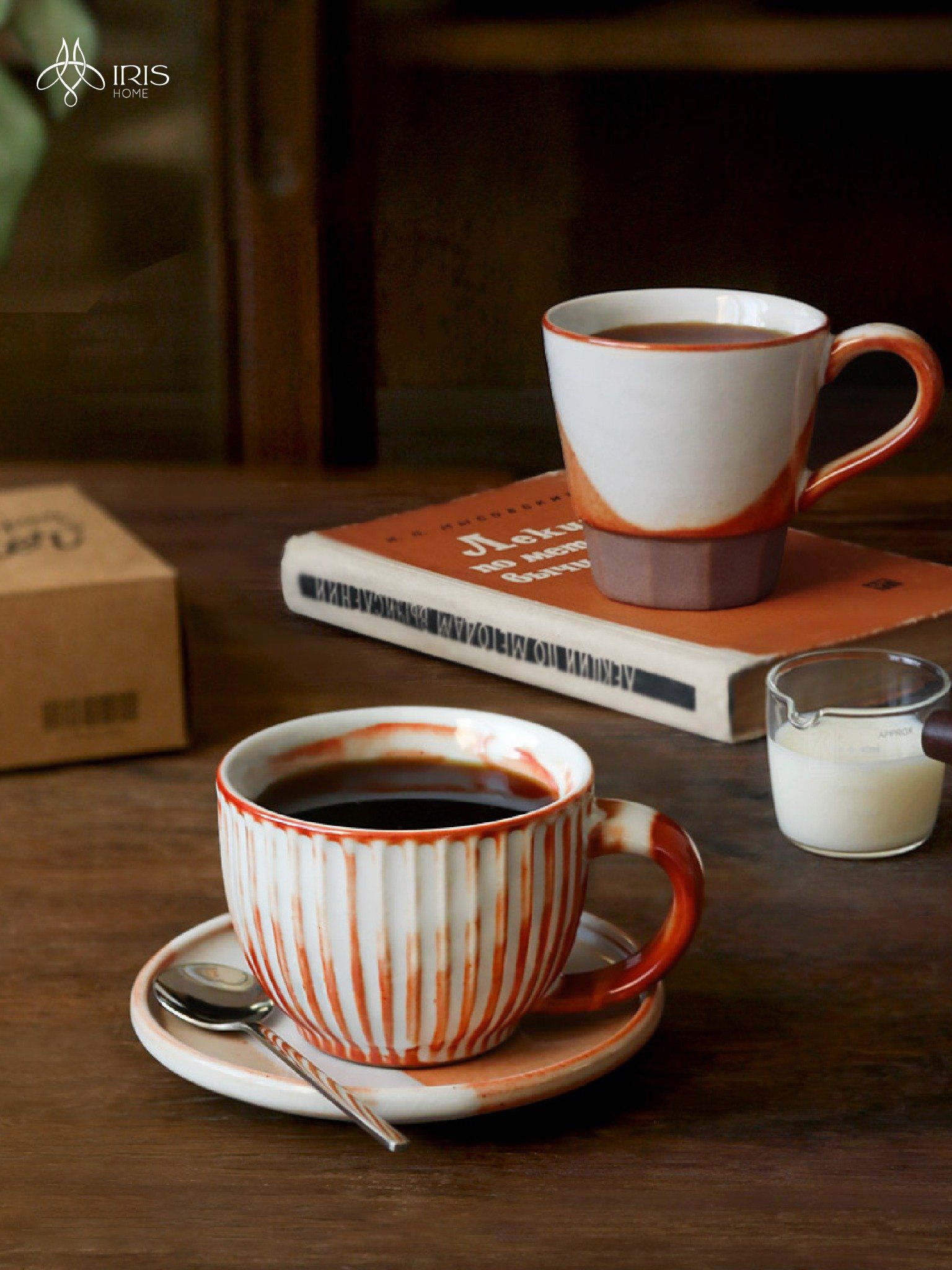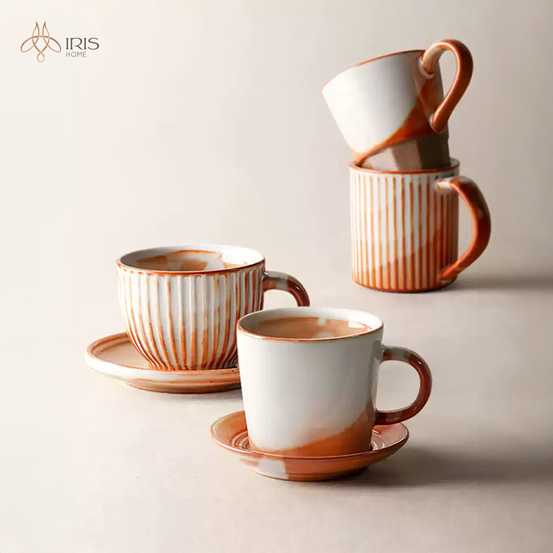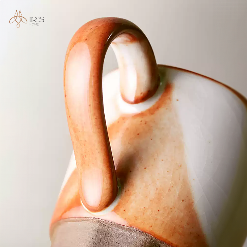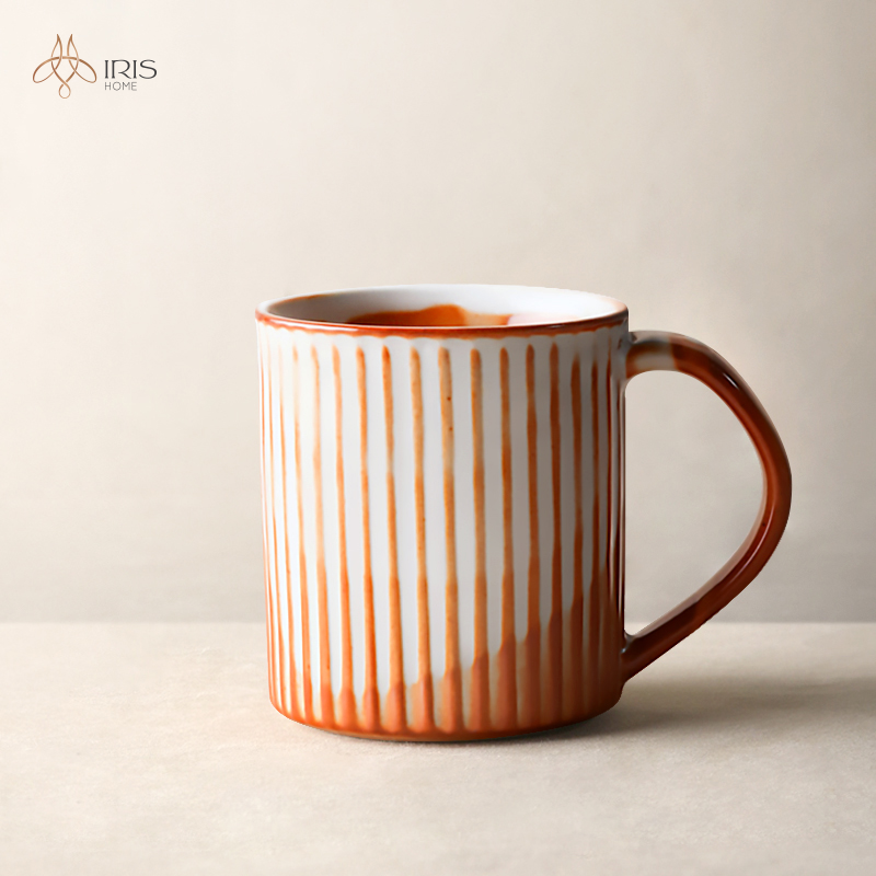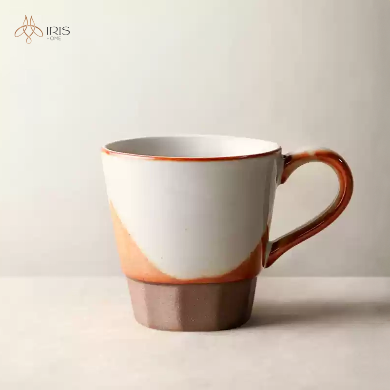 Tách gốm sứ hoạ tiết tráng men màu cam nâu trắng