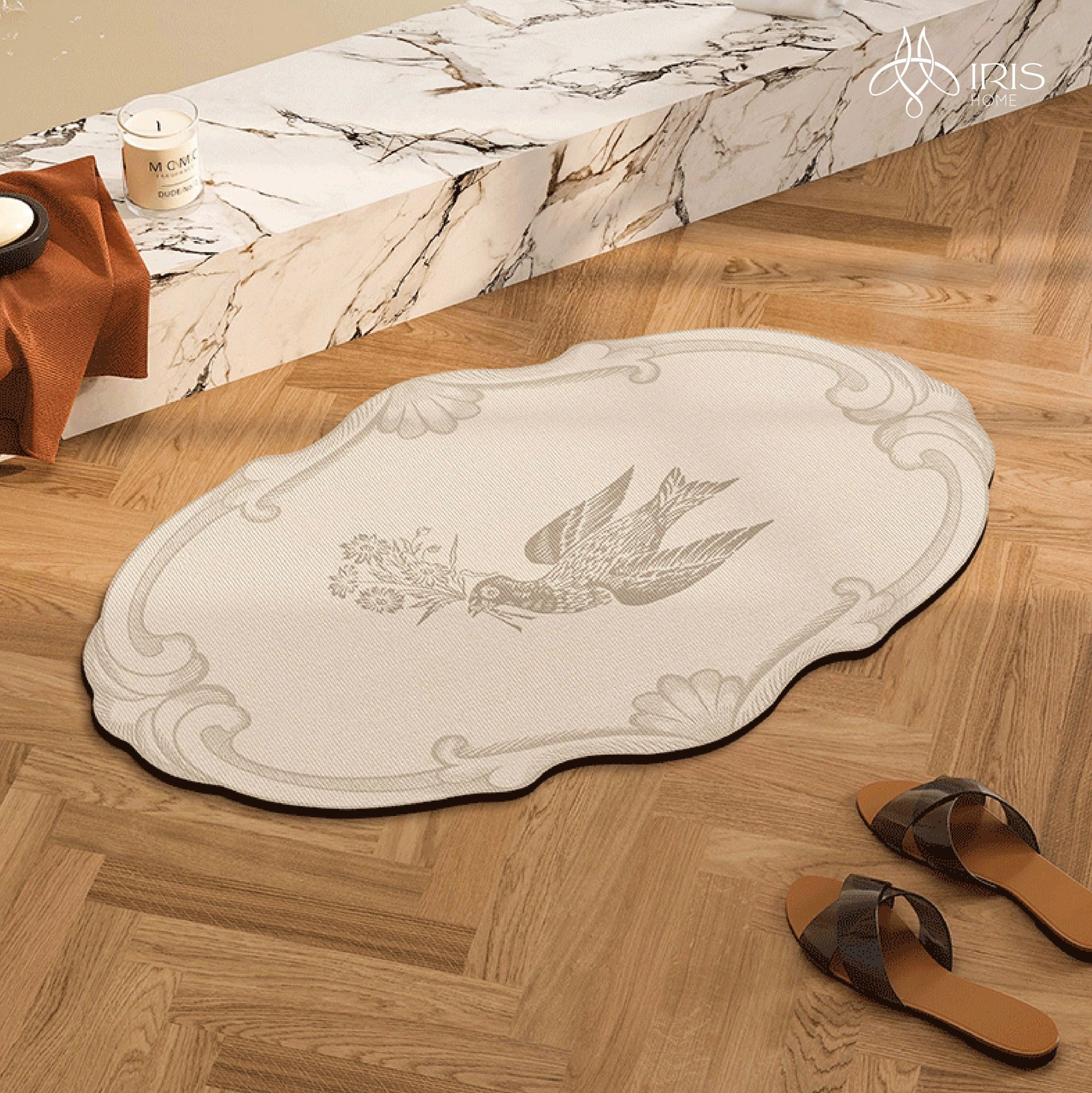 Thảm mềm chống trượt in hoạ tiết chim và dây hoa văn