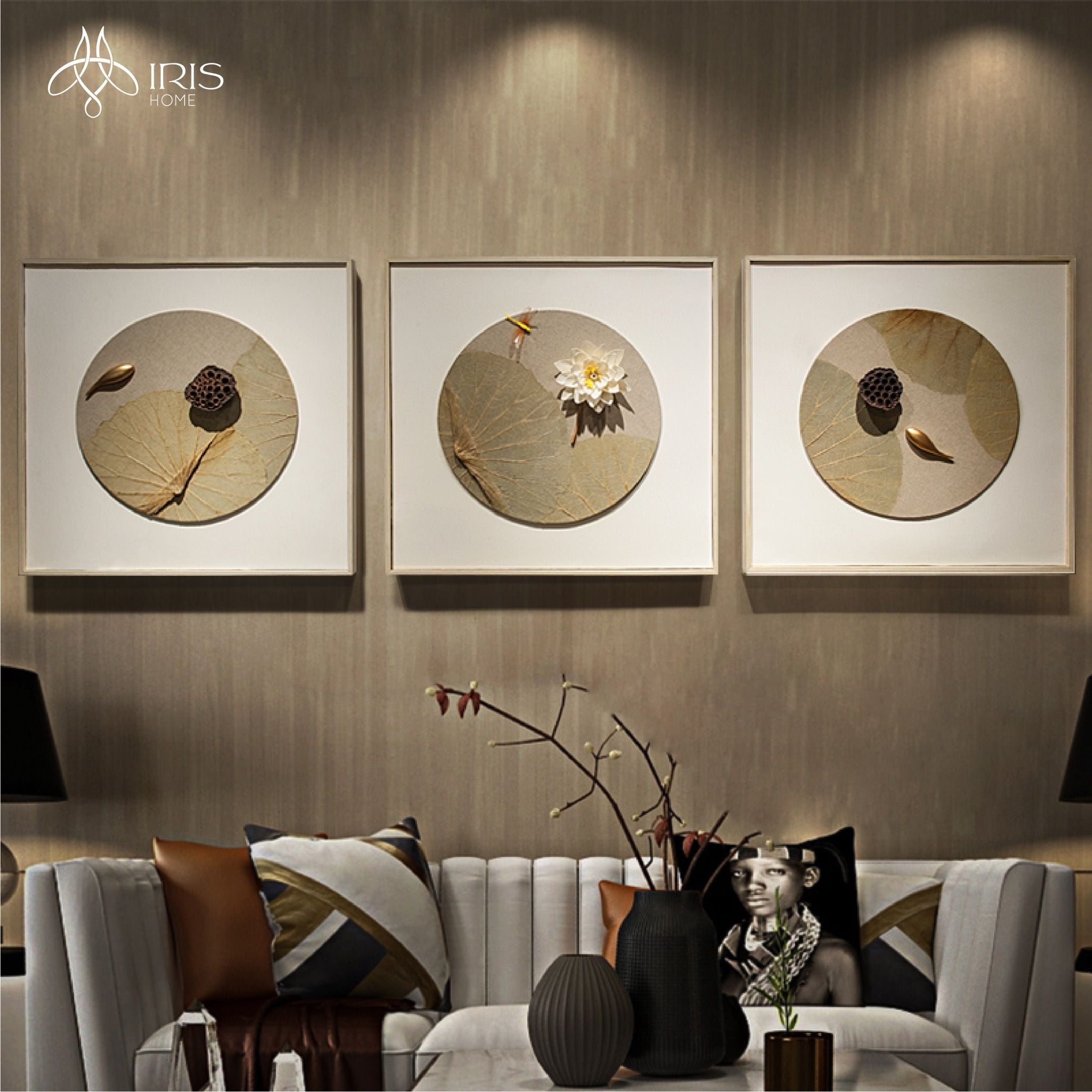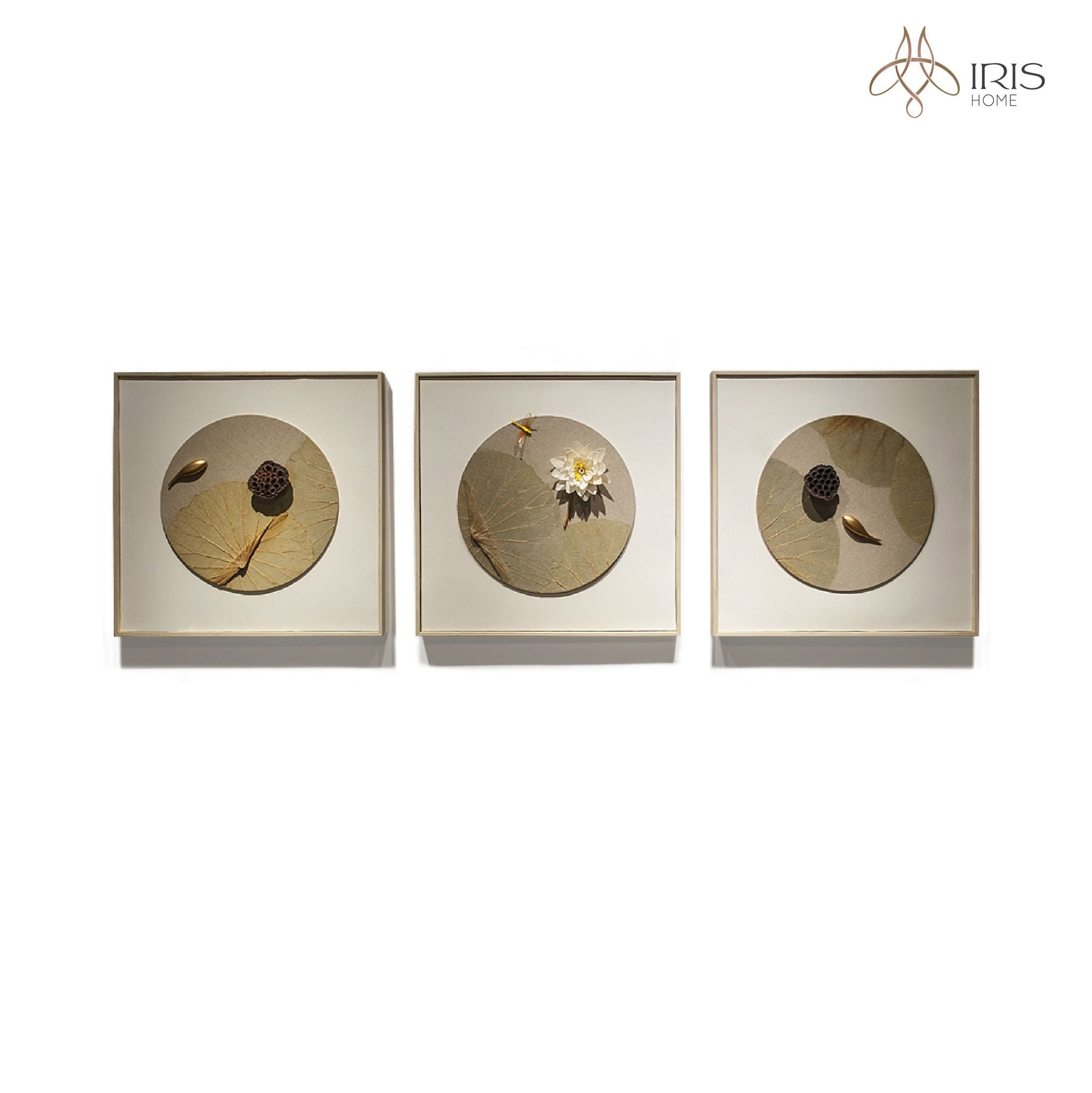 Tên: Tranh nổi thủ công hoạ tiết hoa sen, lá sen và đài sen - Bộ 3 chiếc