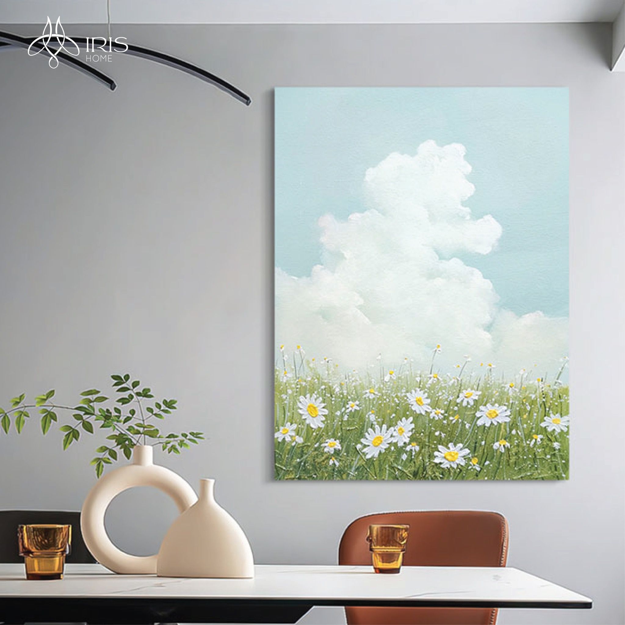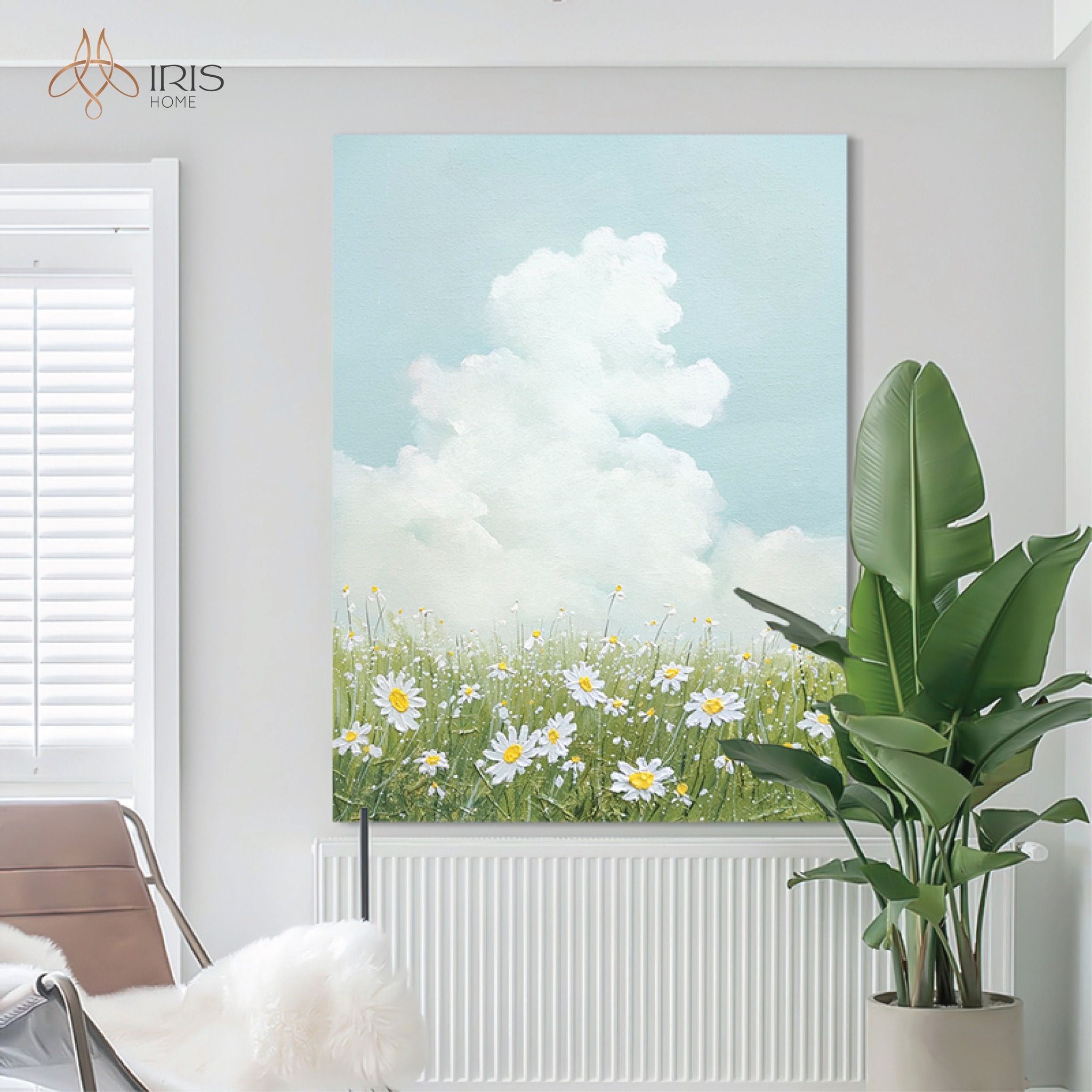 Tên: Tranh treo tường sơn dầu phong cảnh hoa lá, bầu trời