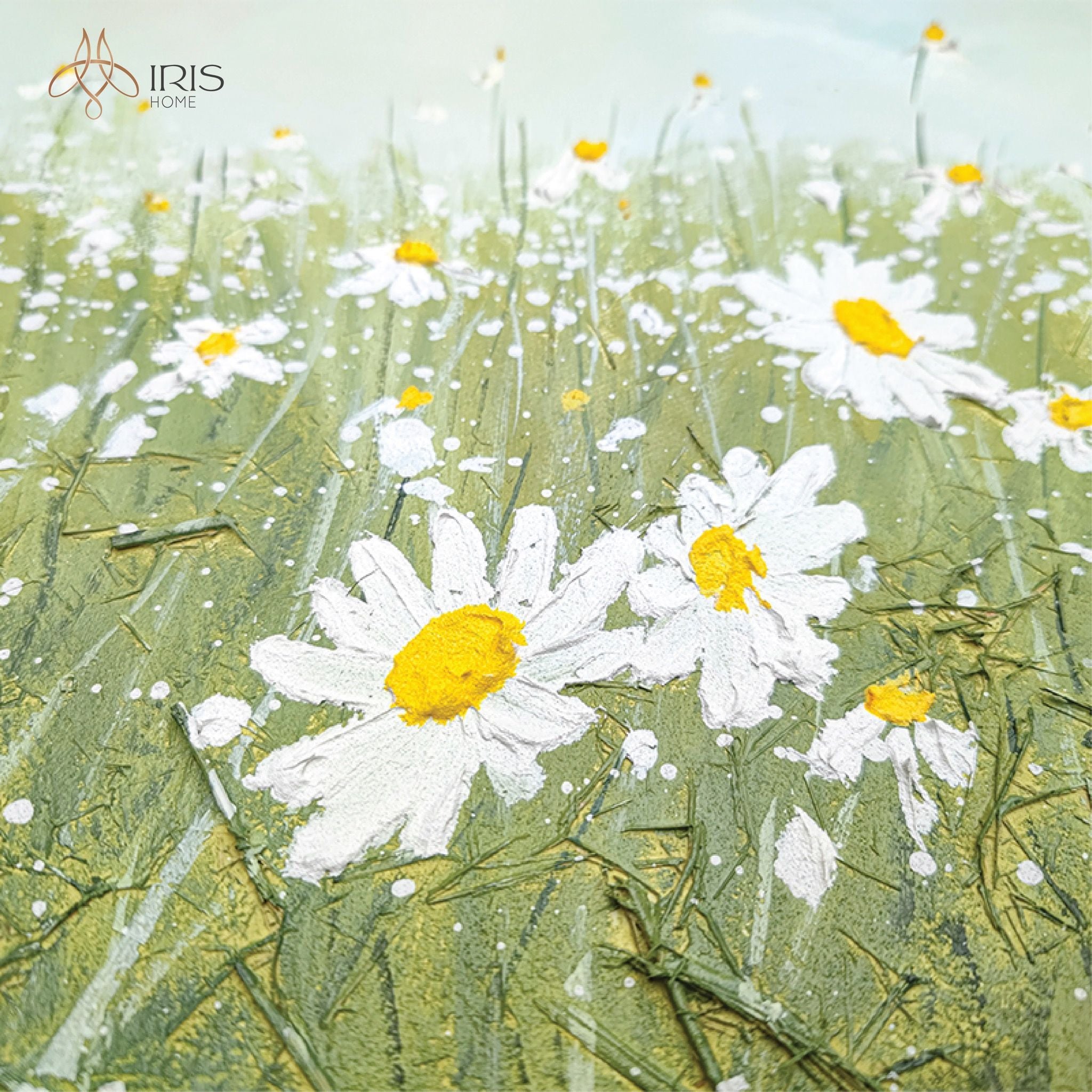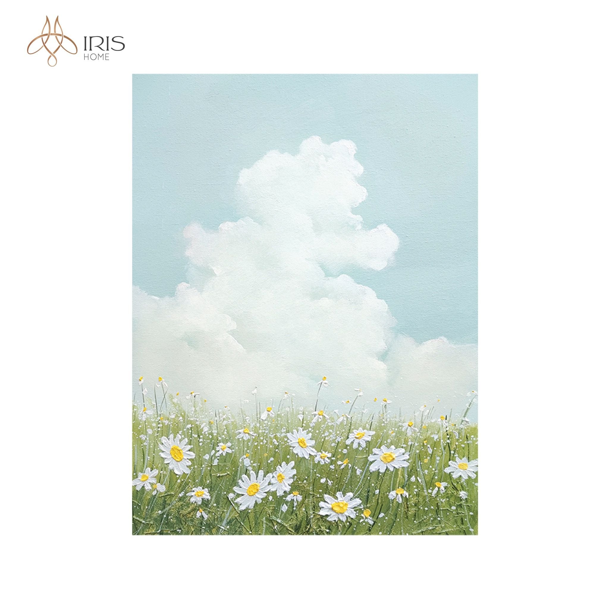 Tranh treo tường sơn dầu phong cảnh hoa lá, bầu trời