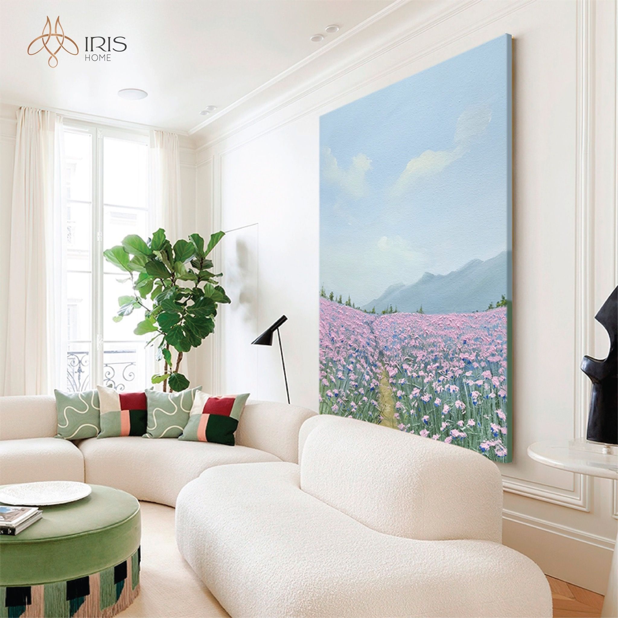 Tranh treo tường sơn dầu phong cảnh vườn hoa