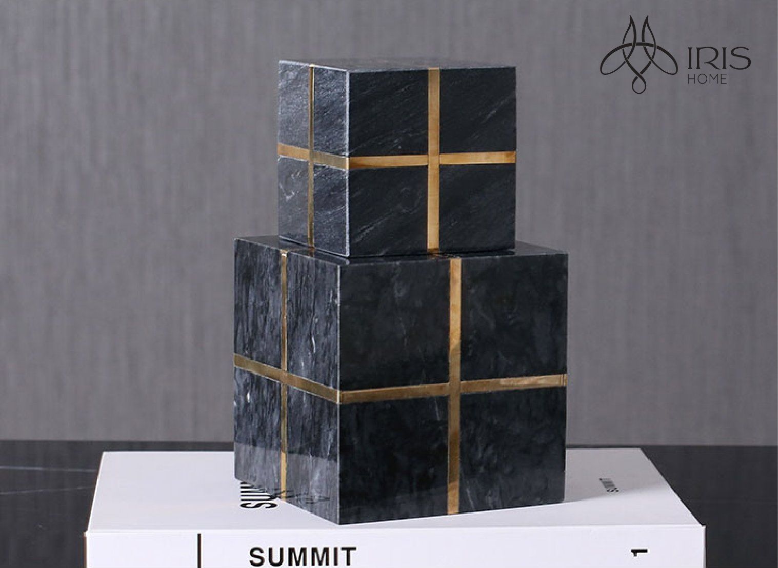 Thiết kế tối giản hiện đại kết hợp đá marble tự nhiên và thanh nẹp đồng sang trọng. Sử dụng để trang trí, chặn giấy