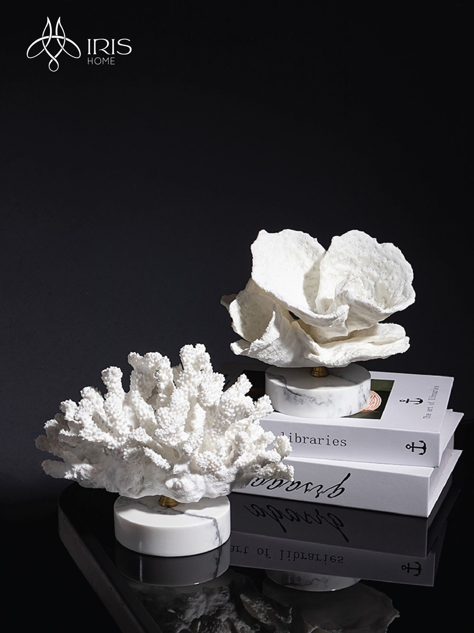 Tượng trang trí san hô toả tròn lớn, đế vân đá marble