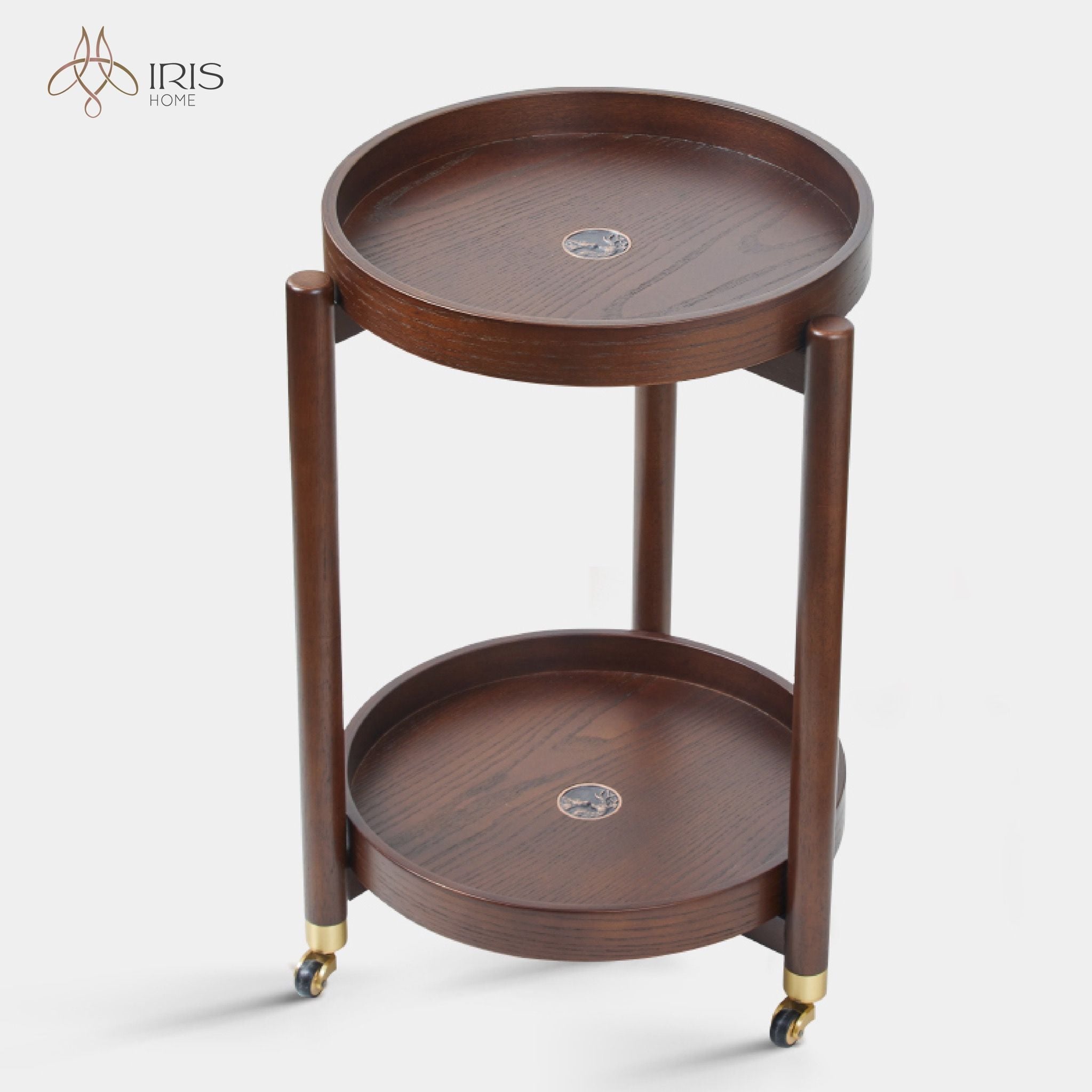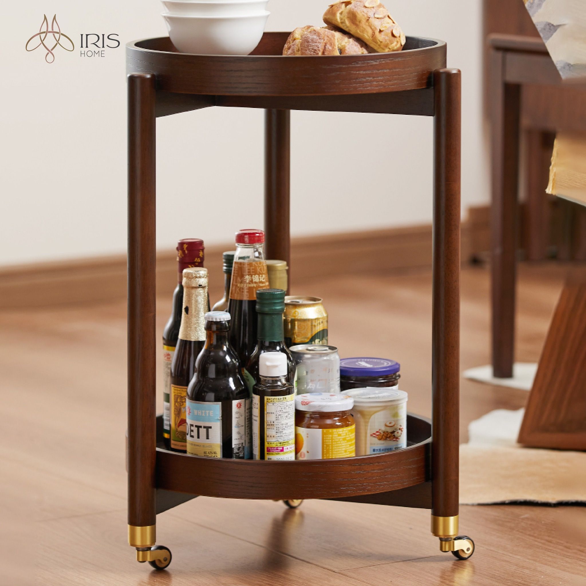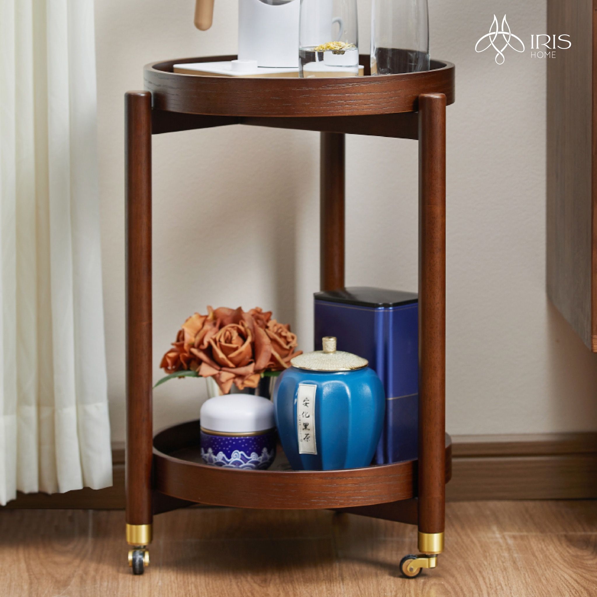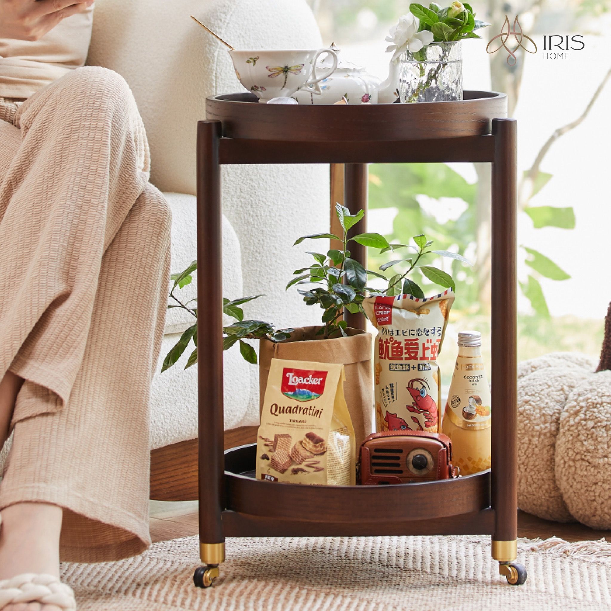 Tên: Xe đẩy dáng tròn 2 tầng bằng gỗ sản xuất thủ công